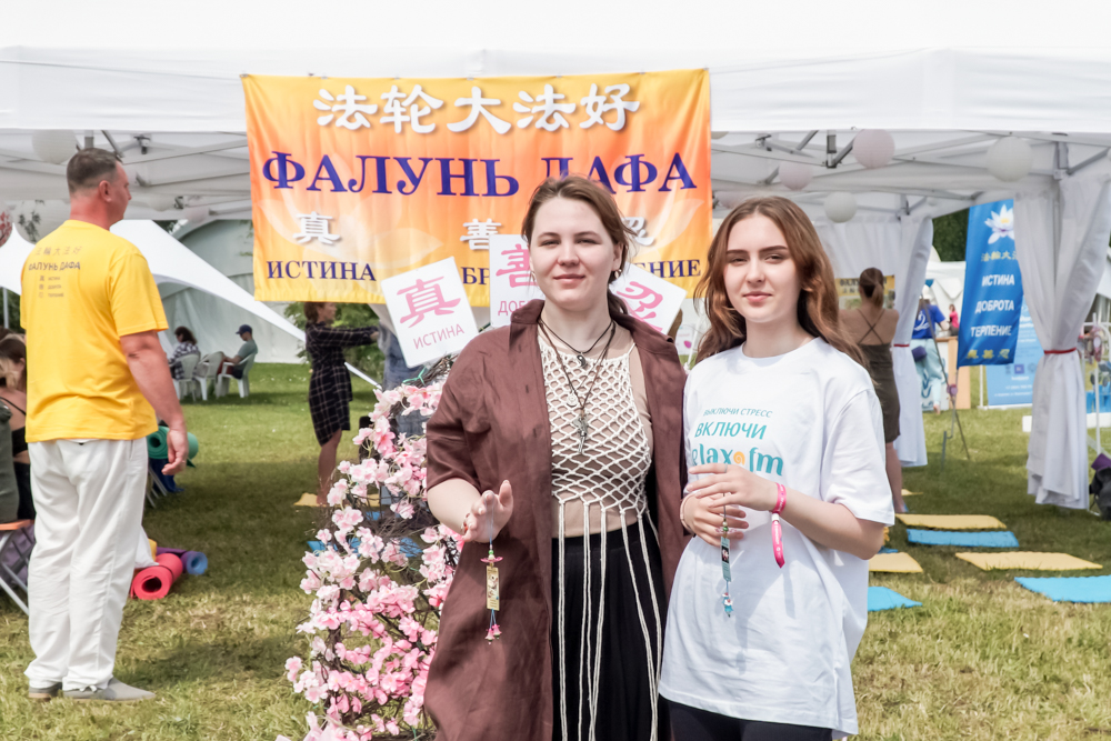 大学生娜斯蒂亚(Nastya)和奥莉亚(Olya)都试着学习了法轮大法的动作,她们对炼功时产生的能量印象深刻。