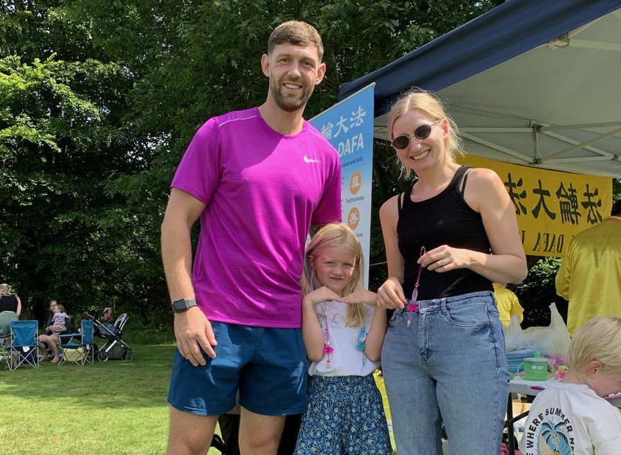 那位爸爸说:“我们支持中国人民争取自由的权利。共产党这么邪恶,不能让它再存在下去了。法轮功教人做好人,是很正的信仰。谢谢你们让我们了解了真相。”他们的女儿也在一旁默默为那些在中国因为信仰失去自由的人祈祷。