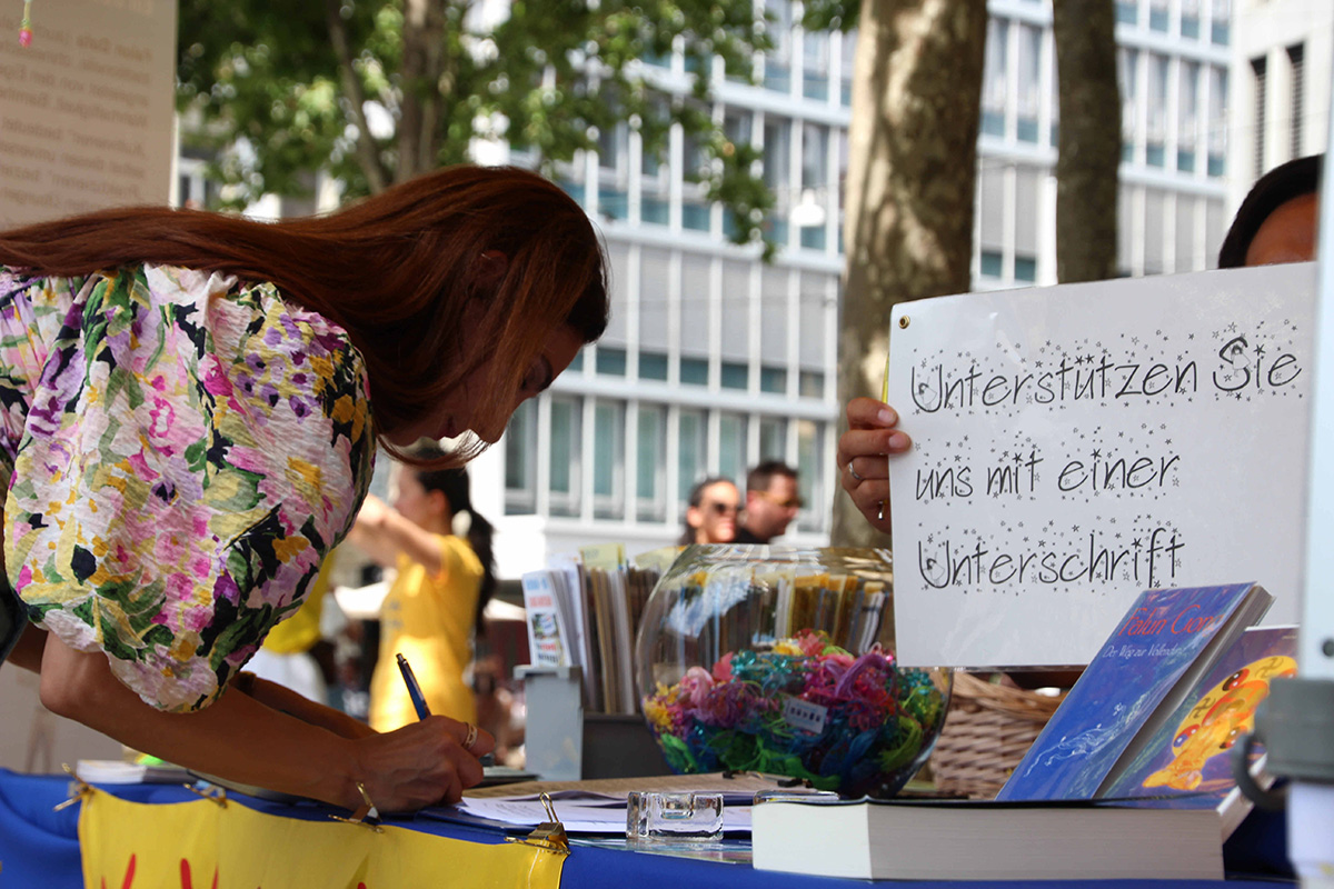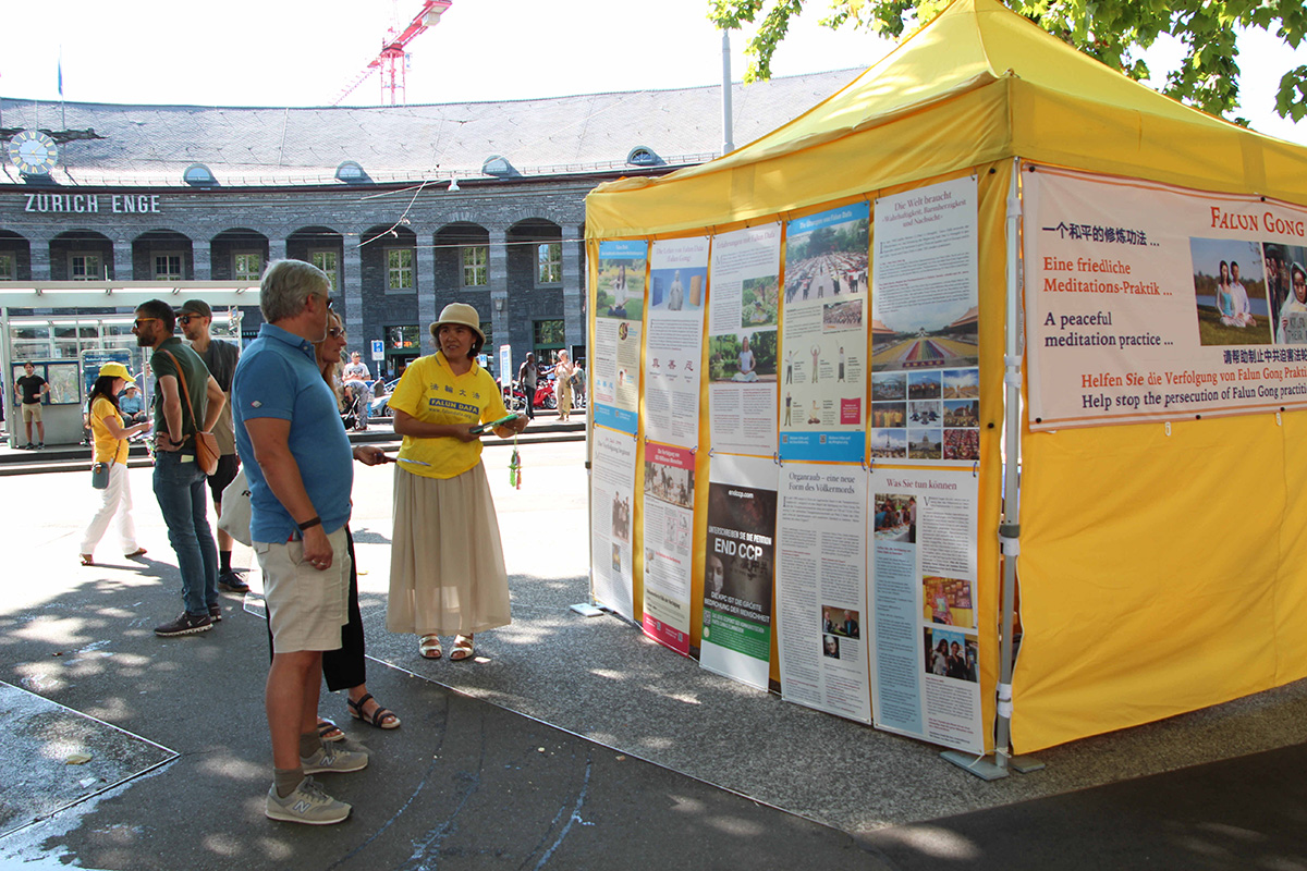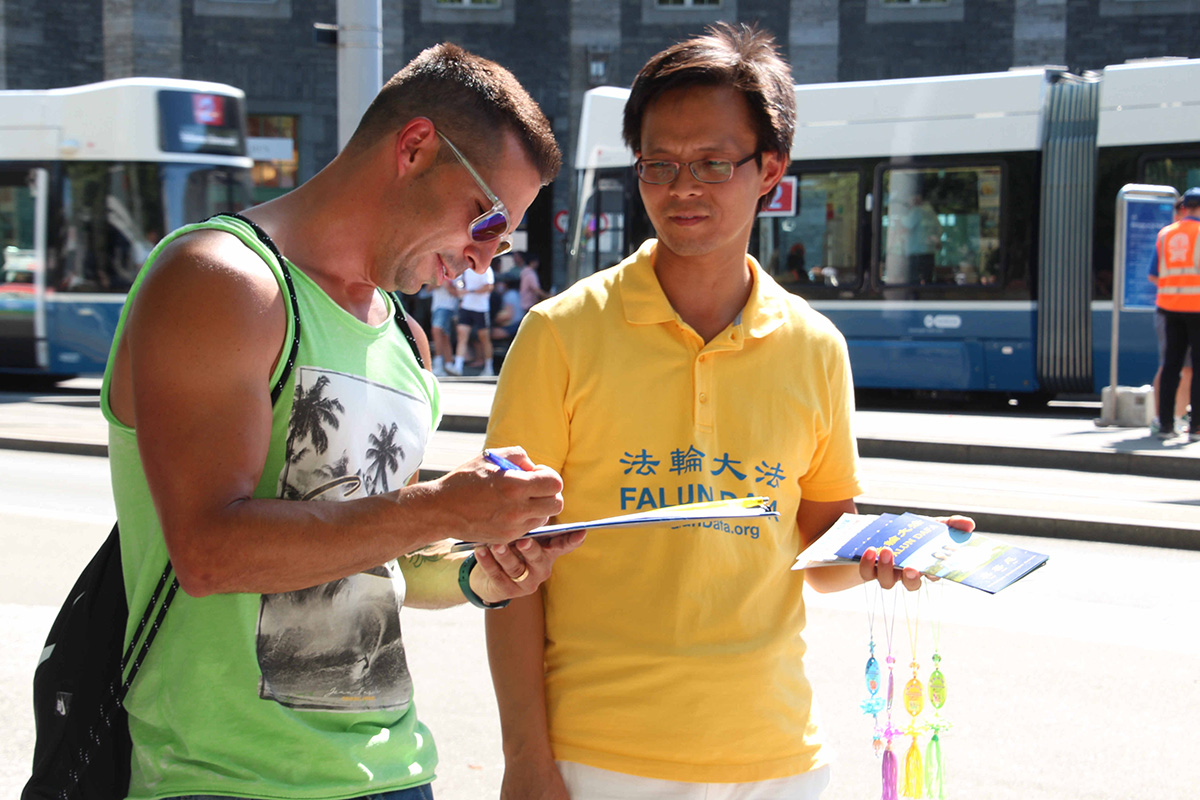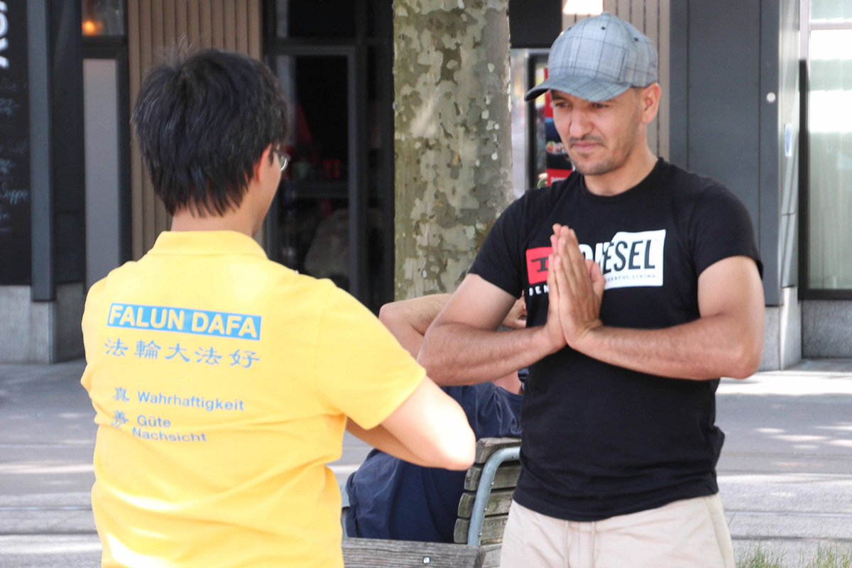 活动当天有不少从国内来旅游或出差的华人,想了解有关法轮功资讯。还有当地华人特别过来支持,并说“你们做得真棒,中共就怕你们法轮功”。