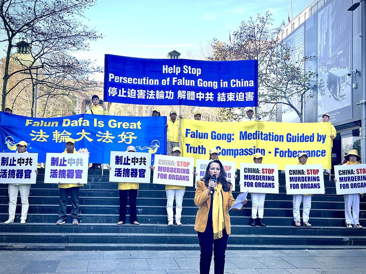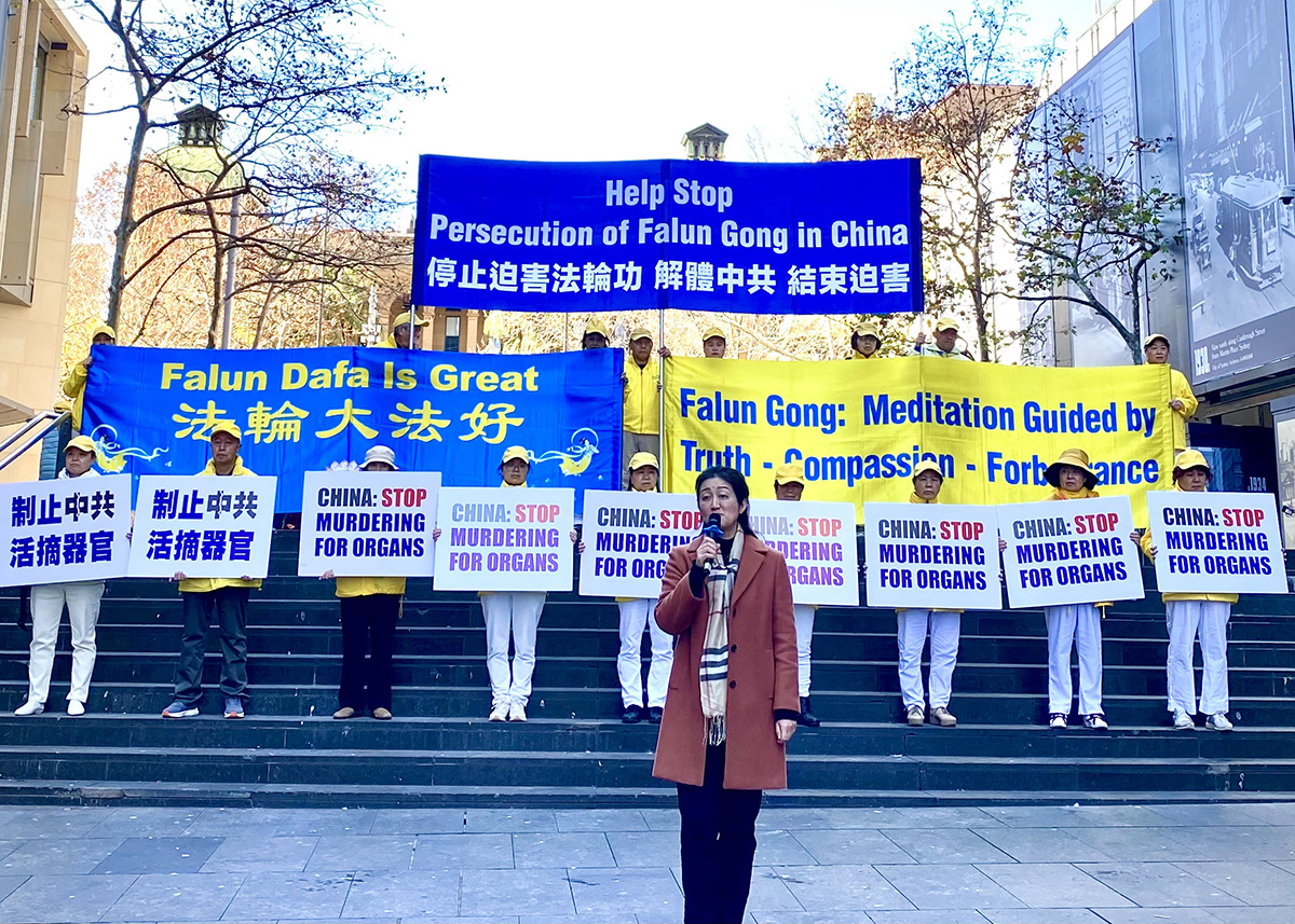 近期从中国大陆黑龙江省大庆市来到悉尼的法轮功学员魏珺,在集会上曝光了因为自己坚持修炼而遭中共多次酷刑迫害的经历,她前后被非法关押共九年多。其中包括在二零一三年因为她不转化,而被绑架到密山洗脑班所经历的逃脱活摘器官的详细经历。最后她说:“我向追查迫害法轮功国际组织证实,中共迫害法轮功的各种酷刑和活摘器官是真实存在的。”