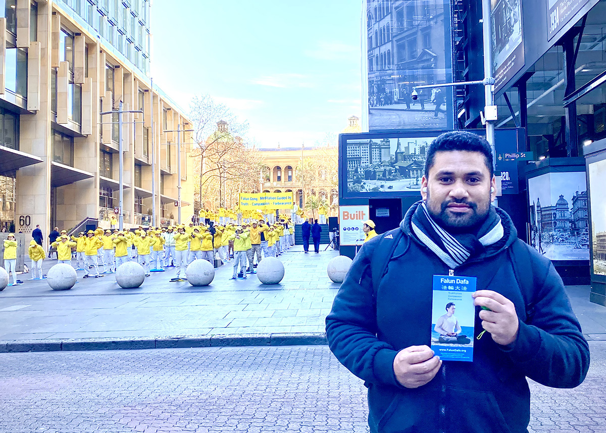 第一次听说法轮功的普尼(Isaac Pudney)说:“我认为,人们有机会专注于静坐,能够感受这种体验,这很美好。在这美丽的清晨,他们看上去平静、优美,真是令人惊叹。”