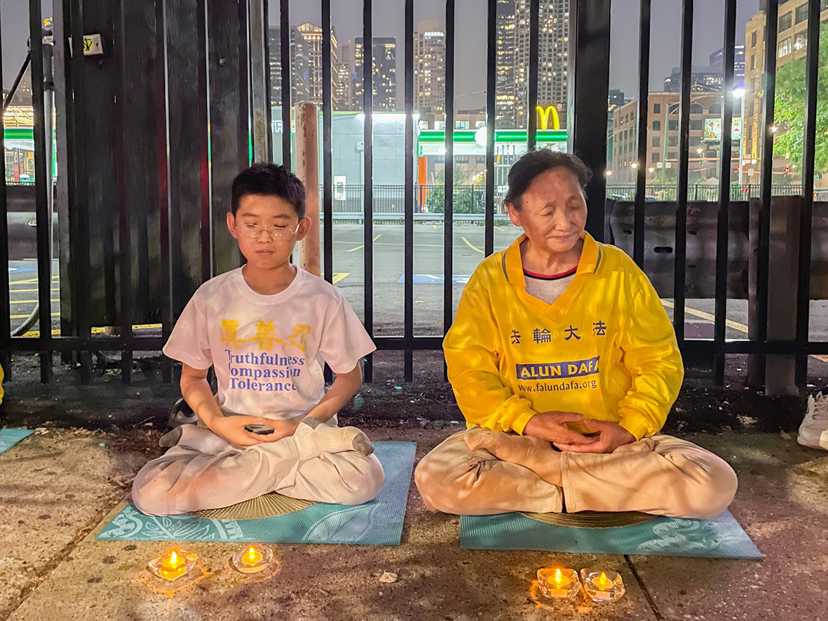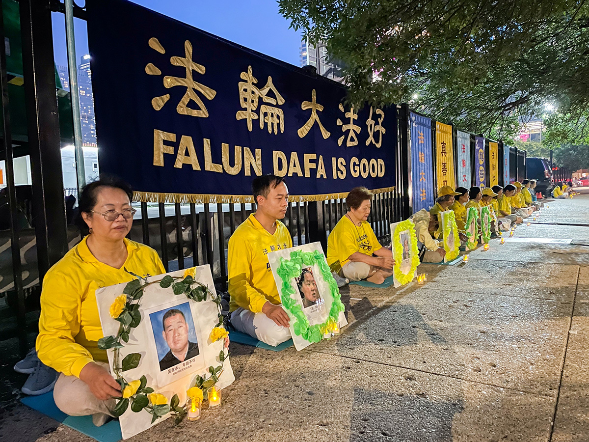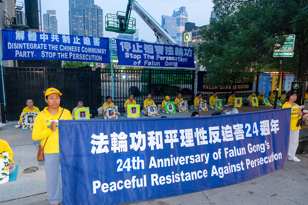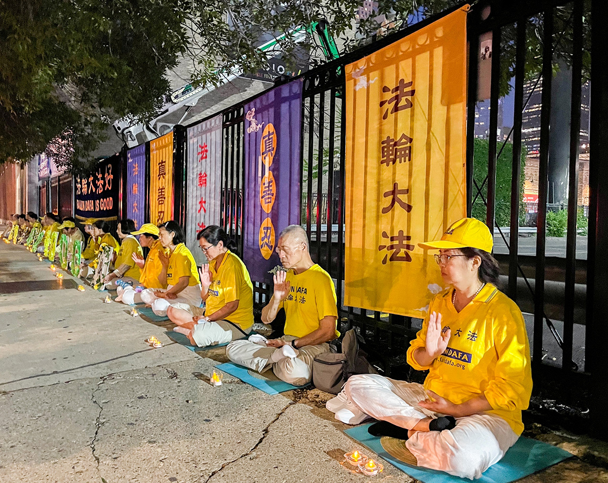 ![]() 图4~5:二零二三年七月十五日傍晚,大芝加哥地区的部分法轮功学员在中领馆前烛光夜悼,揭露和抗议中共二十四年来对法轮功学员的残酷迫害。 |