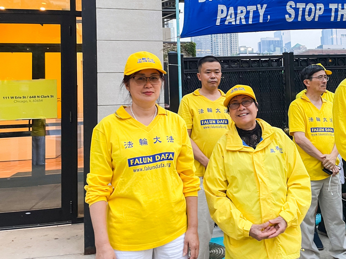 ![]() 图7:来自越南的法轮功学员兰(Lan,前左)和信(Hien,前右)参加在芝加哥中领馆前举办的反迫害集会。 |