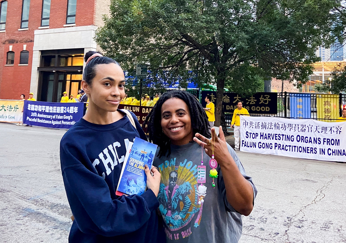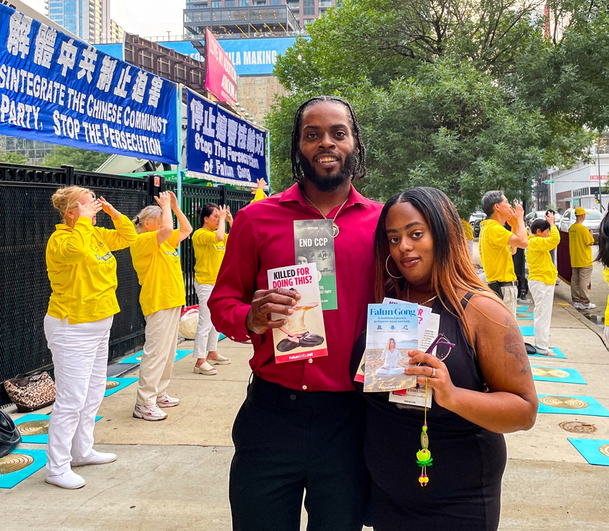 理查德·威尔逊(Richard Wilson)和科林·威尔逊(Korrin Wilson)夫妇是芝加哥居民,他们感谢法轮功学员让他们了解了中共对法轮功迫害的真相。理查德说:“其实我小时候上学的时候就听说过法轮功。我知道(这个功法)真的很好,因为可以帮助人清除身体上和精神上不好的东西,所以我很喜欢。”