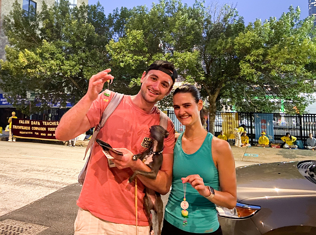 凯莎·洛佩兹(Keisha Lopez)和亚历山德拉·波兰(Alexandra Polland)对中共对法轮功的残酷迫害深感震惊和不安。凯莎是一名人权工作者,看着展板上的真相信息,她不停地说,“为什么我们竟然都不知道中共对法轮功的可怕的迫害?”她们表示,她们会对中共可怕的暴行持续深切的关注,并会向朋友和更多的人传播这些真相。