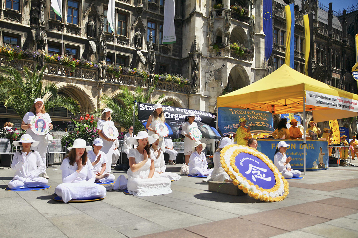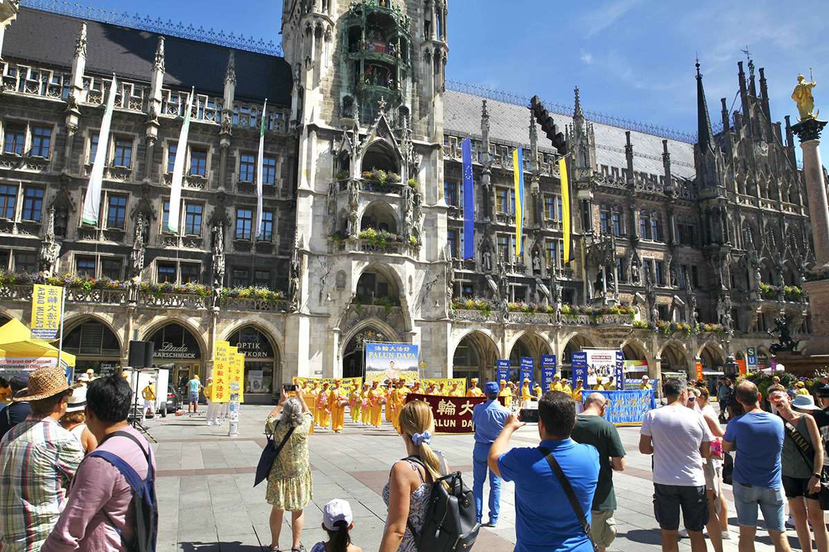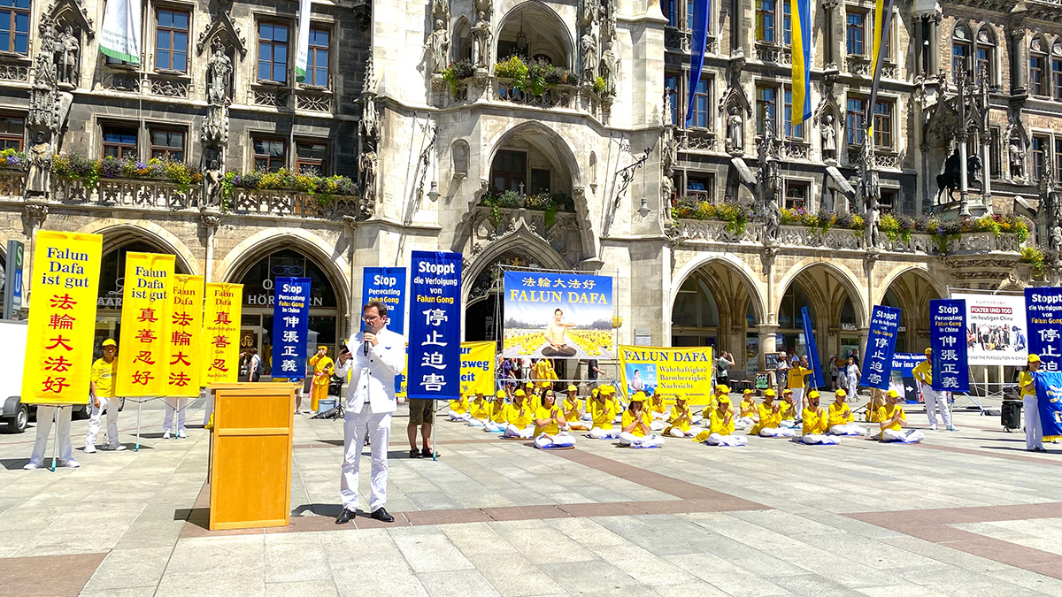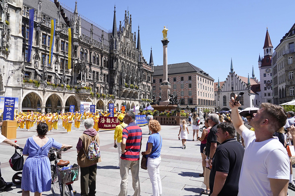 ![]() 图1~2:二零二三年七月十五日,德国法轮功学员在慕尼黑市政府前的玛利亚广场举办集会,纪念法轮功学员反迫害24周年。 |