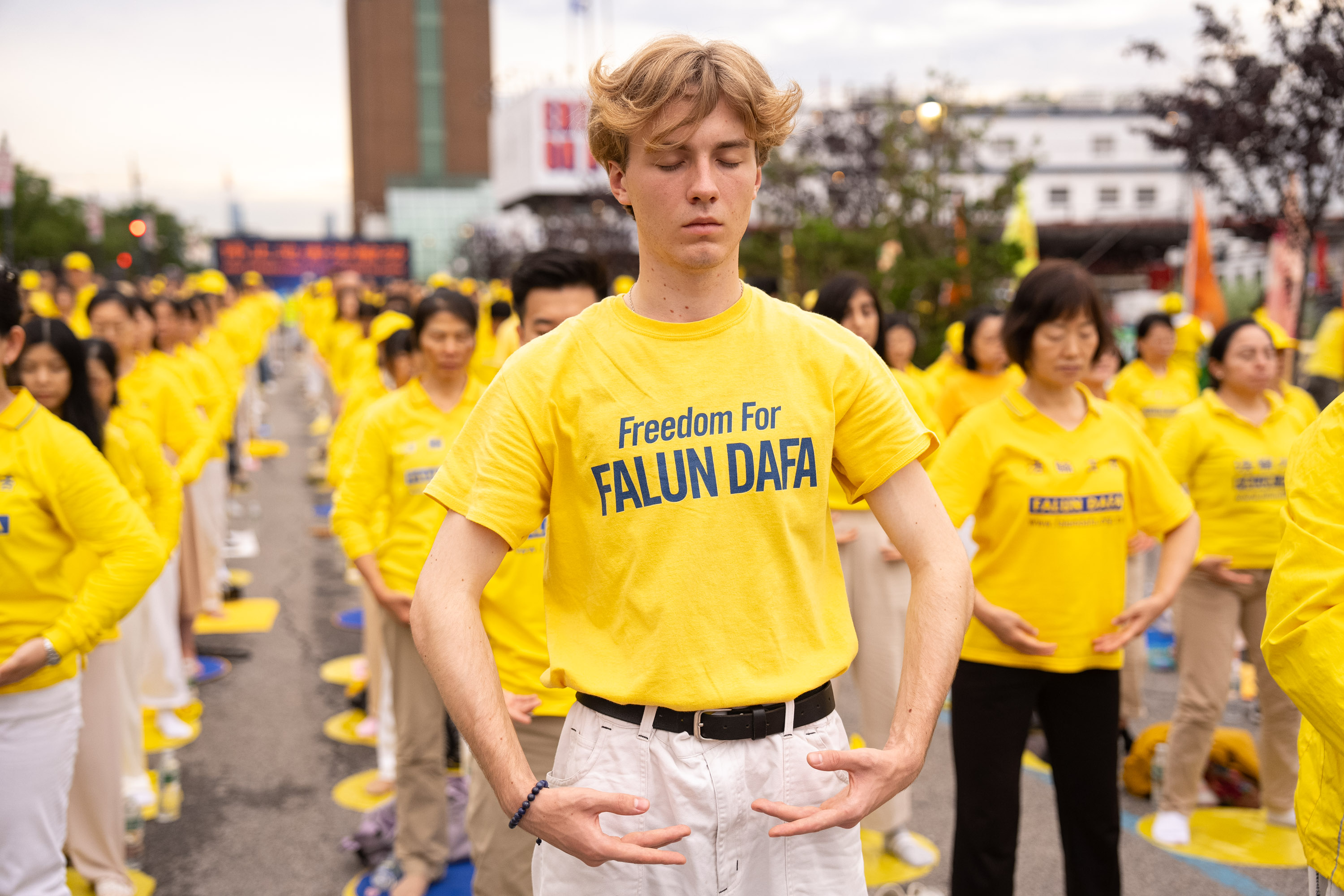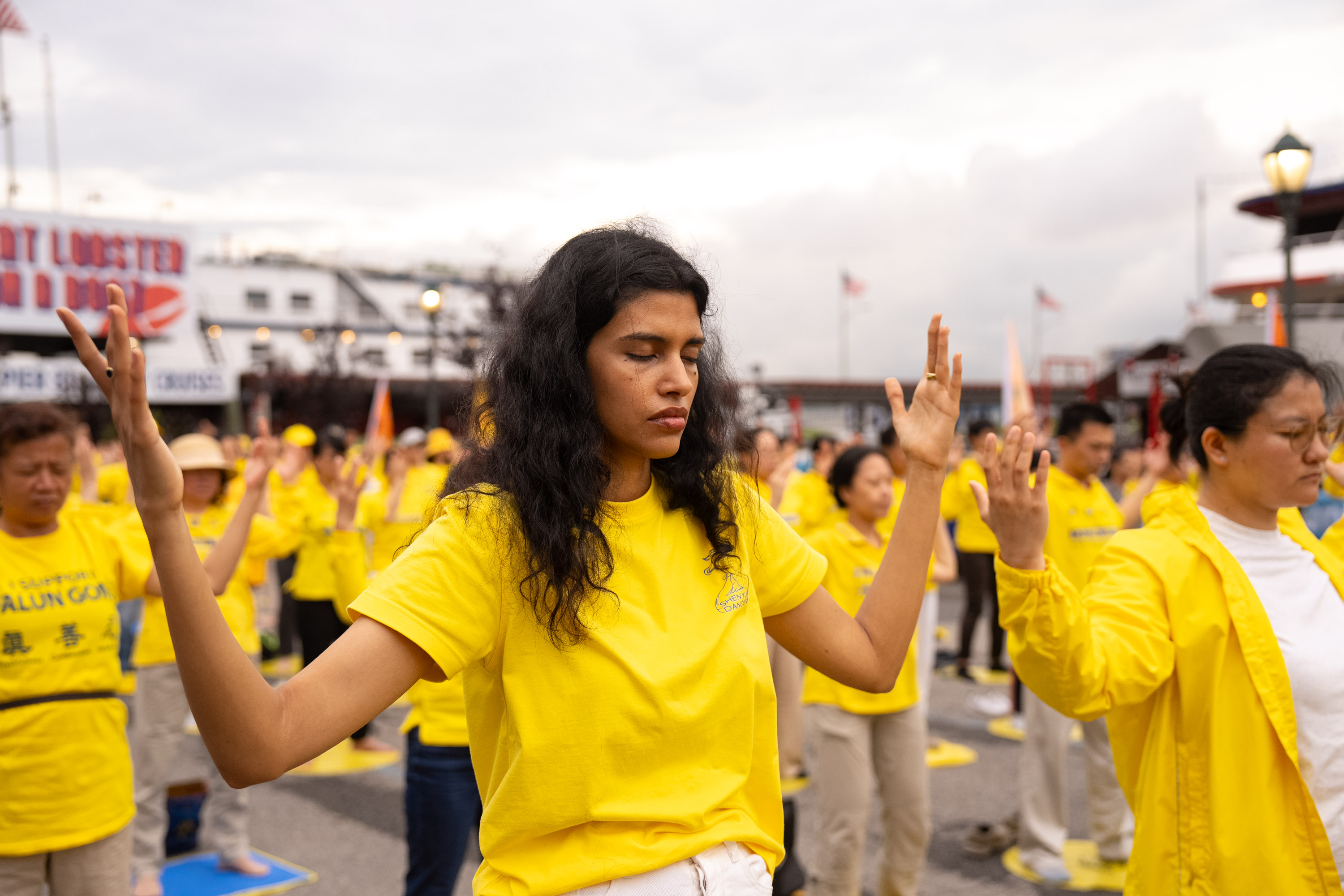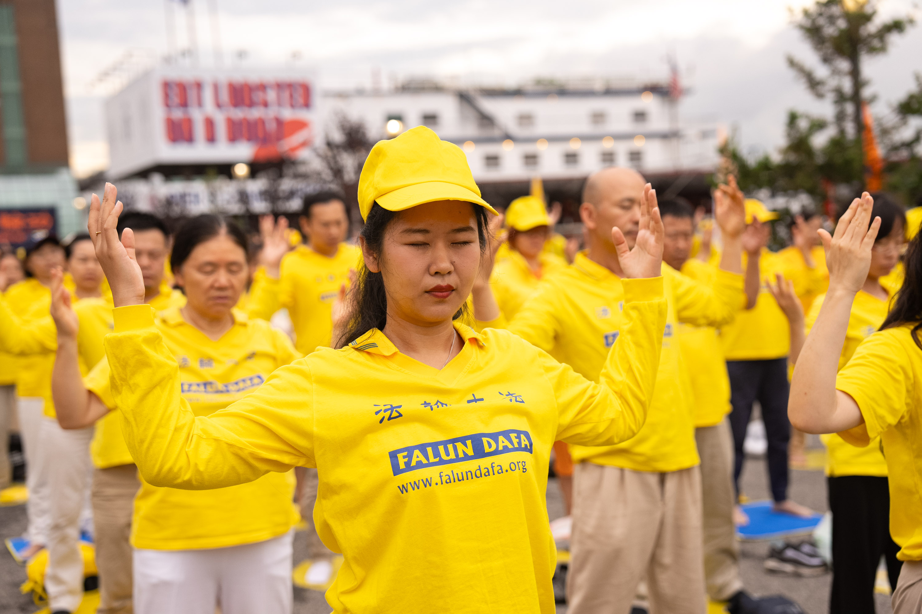 一名华人青年男子站在河边,静静地看着学员炼功。他说,自己前一天在唐人街看到了法轮功学员游行,他经常看新!唐!人:电视台的节目,并说:“我也很想学习法轮功,很想为法轮功学员做些什么。”一位法轮功学员建议他,可以帮助传播真相,也可以上法轮大法网站(falundafa.org)学习法轮功。他诚恳地表示:“我会的。”