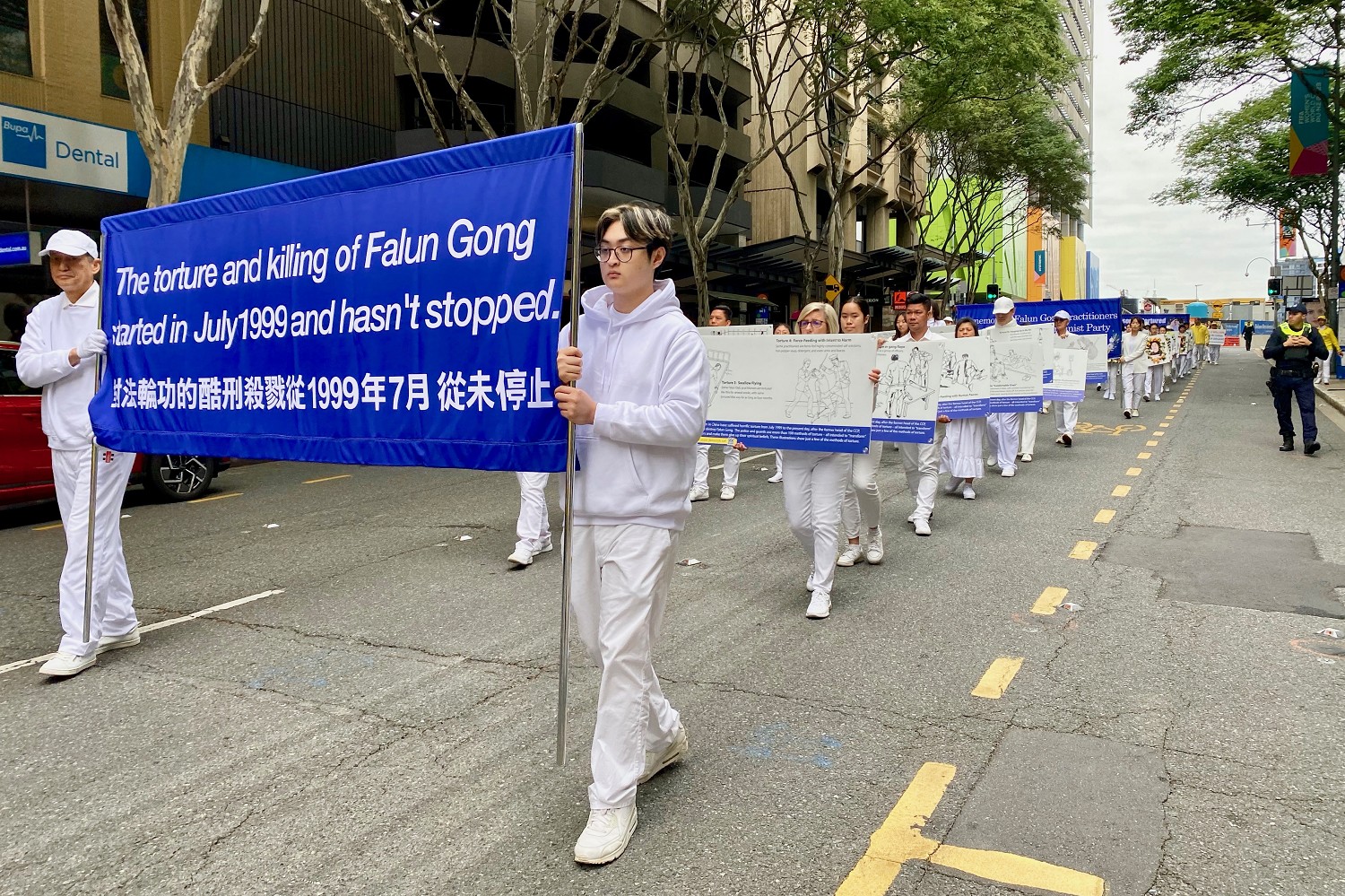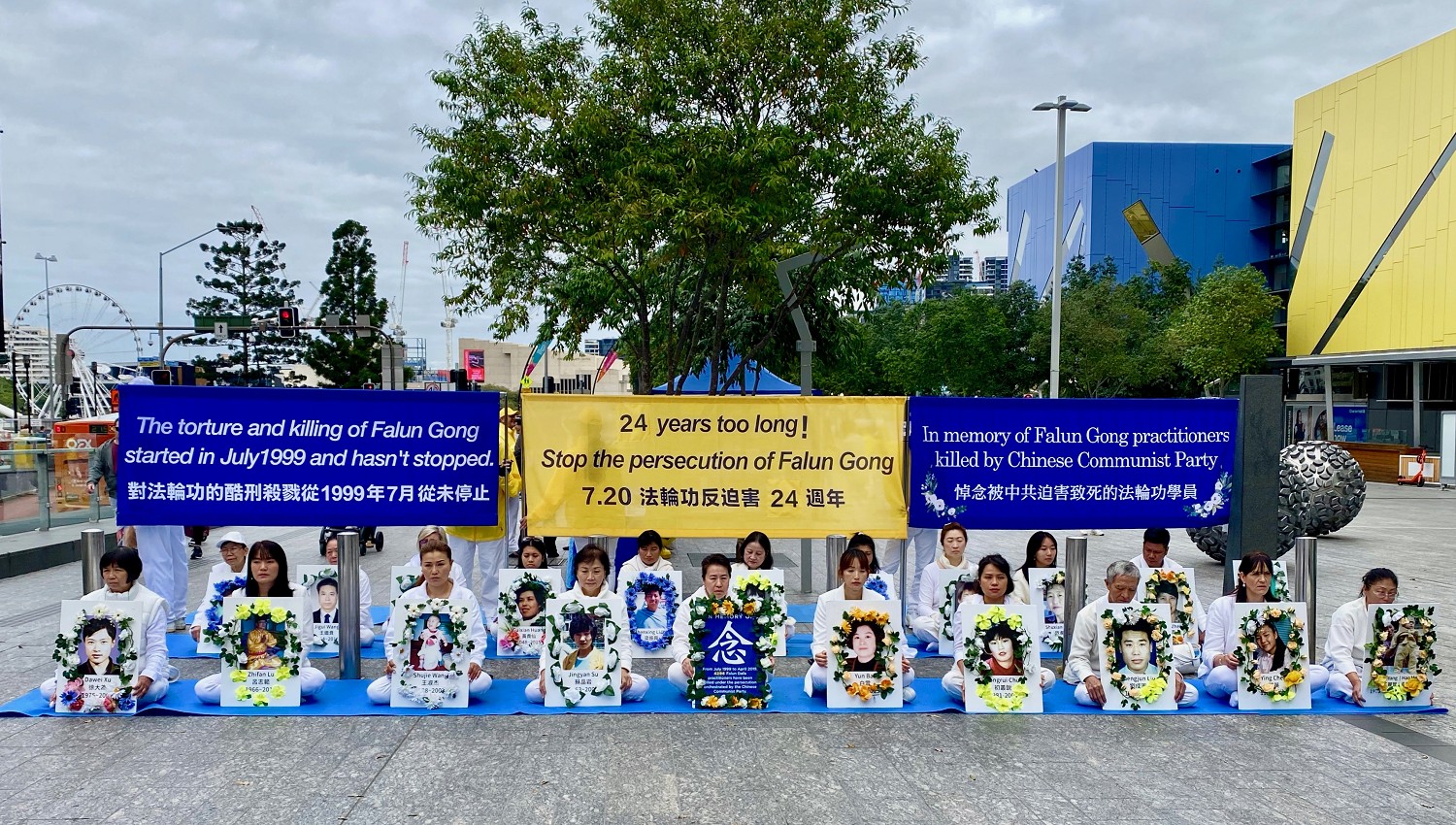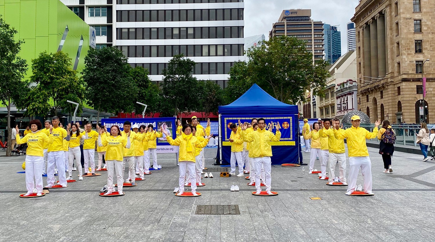 法轮功学员在布里斯本广场(Brisbane Square)举行了集体炼功等活动,悼念二十四年来因坚守真、善、忍宇宙法理修炼而被迫害致死的学员,并揭露中共对法轮功的迫害,现场民众对中共迫害法轮功的暴行感到震惊,纷纷签名谴责中共,呼吁早日结束迫害。