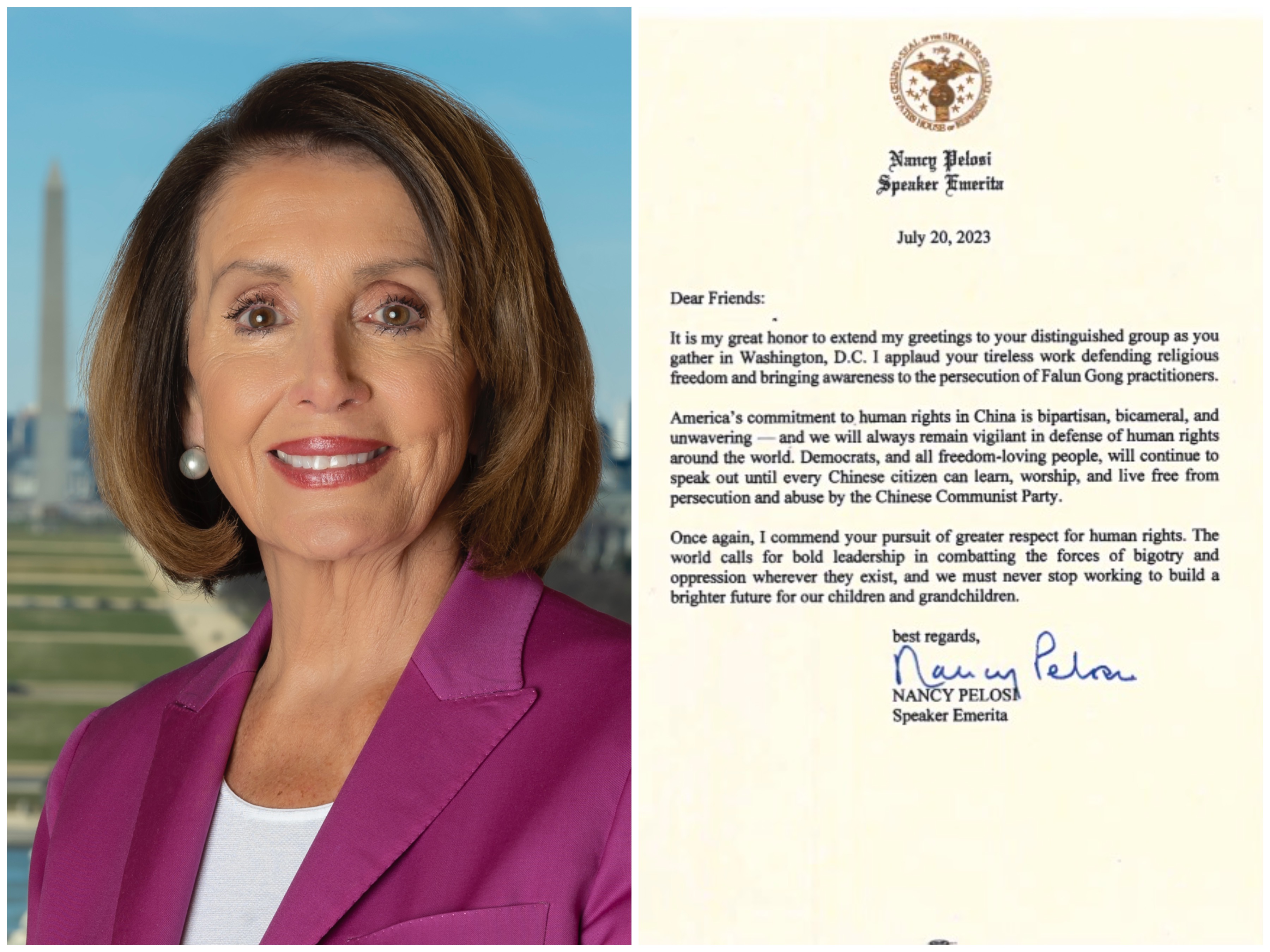 美国前众议院议长、加州联邦众议员南希·裴洛西(Nancy Pelosi)在给法轮功学员的信中说:“当你们聚集在华盛顿特区时,我非常荣幸地向你们这个杰出的团体致以问候。我赞赏你们为捍卫宗教自由并唤起人们关注法轮功学员遭受的迫害而做出的不懈努力。