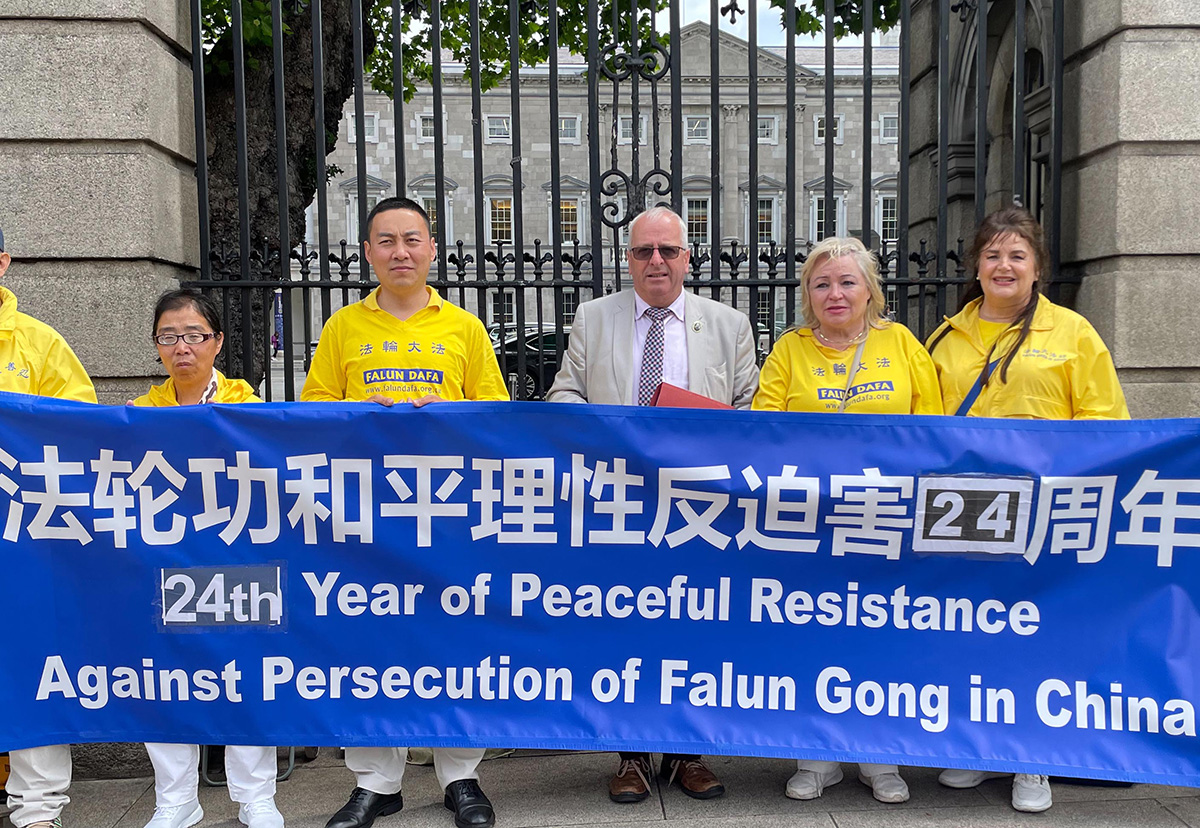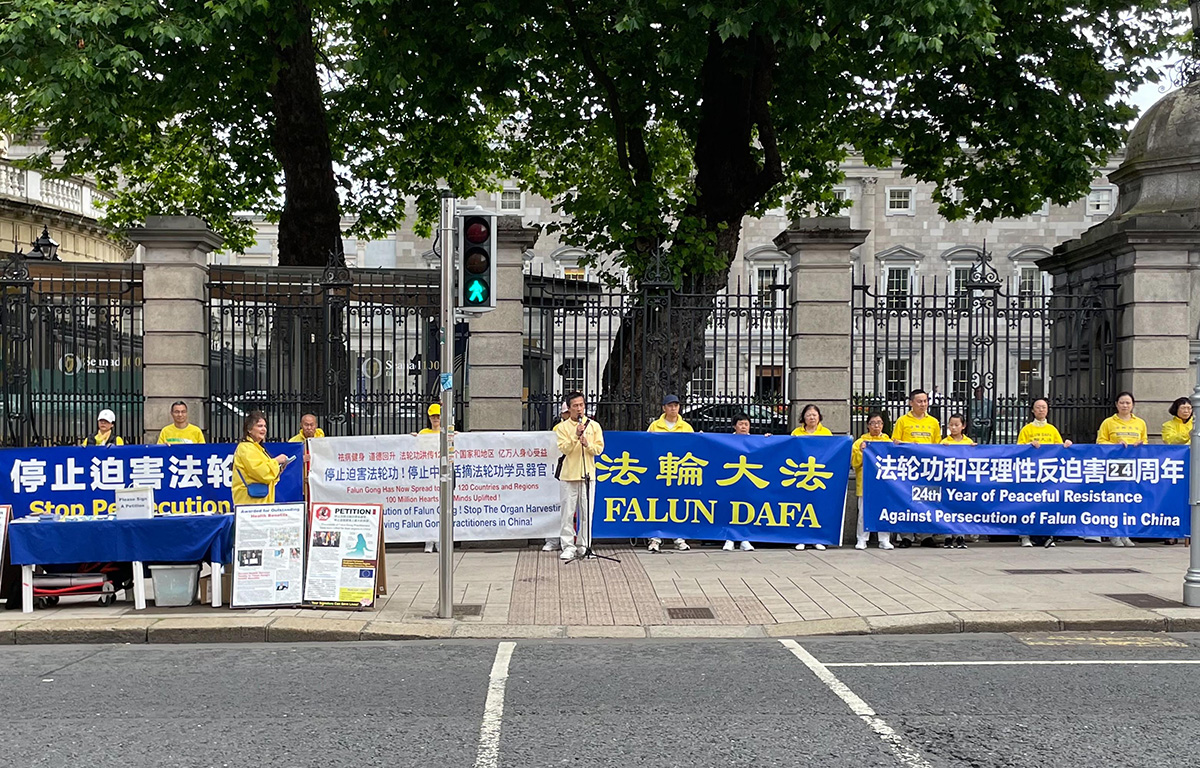 ![]() 图1:二零二三年七月十二日,爱尔兰法轮功学员在国会伦斯特府(Leinster House)前集会纪念反迫害二十四周年。 |