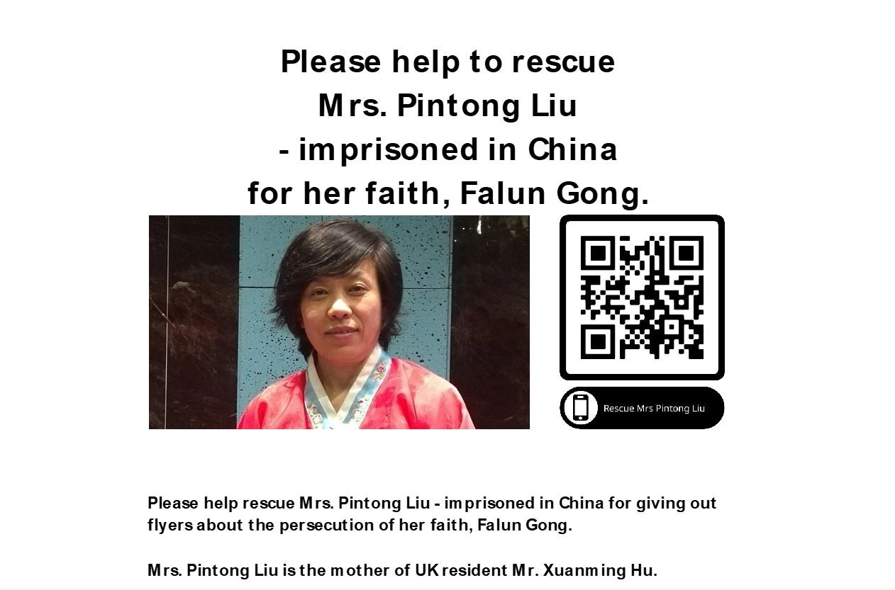 征签表是呼吁英国政府营救英国居民胡轩铭的母亲刘品彤,她因修炼法轮功曾被中共非法监禁八年,遭受酷刑折磨,今年二月又被绑架,再次遭受迫害。