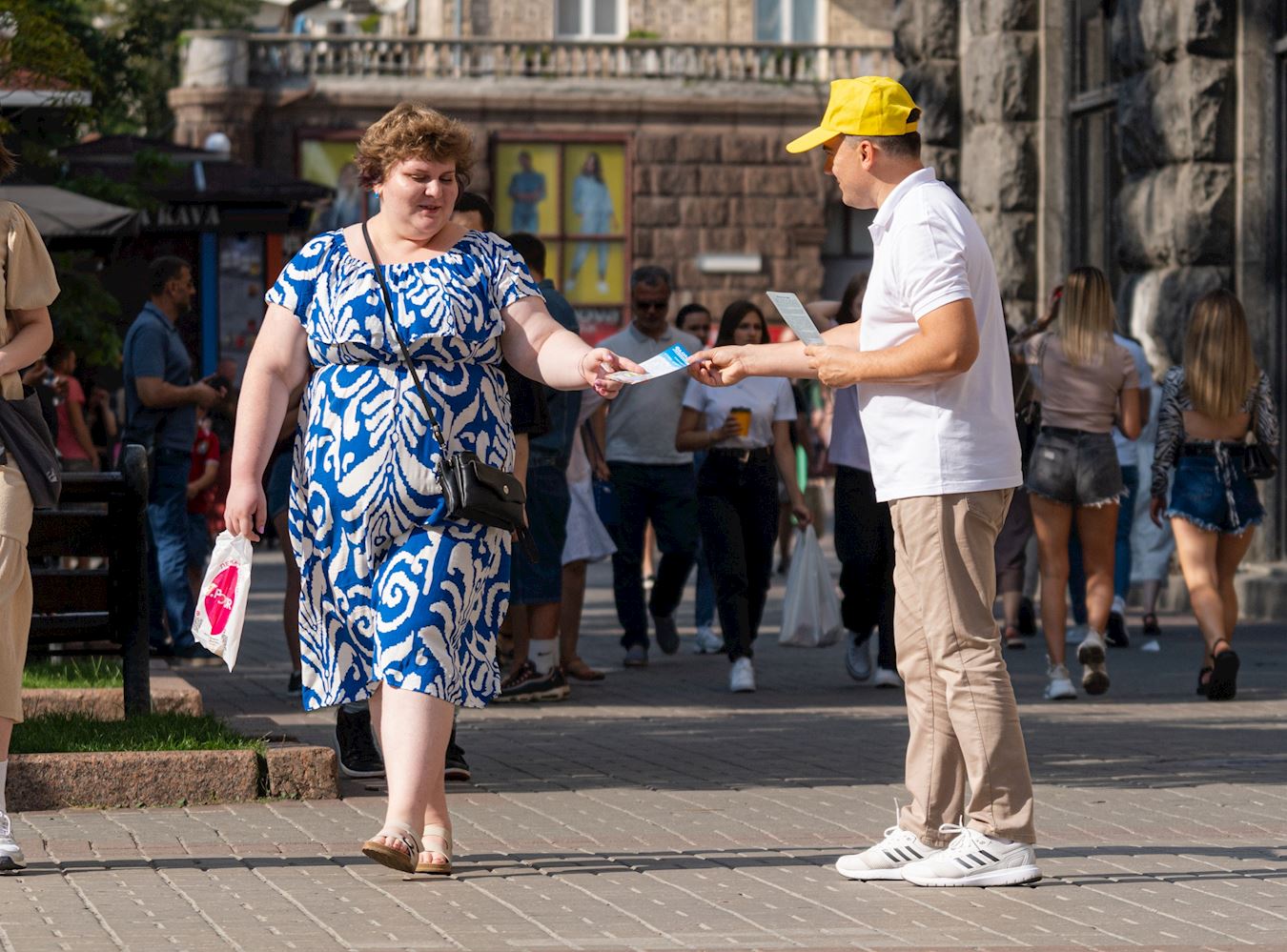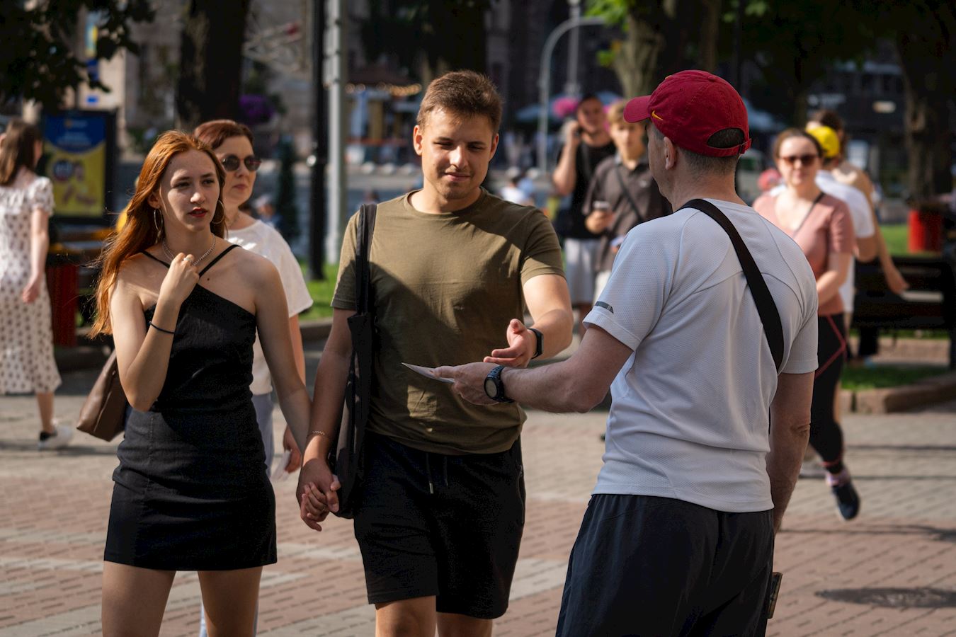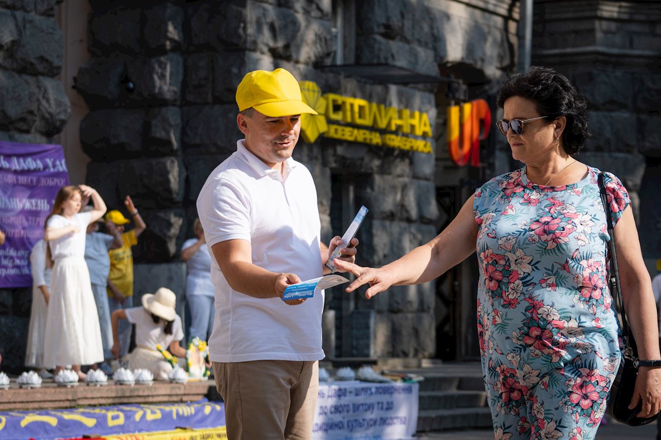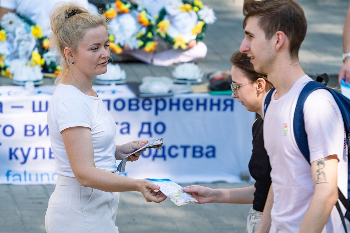 在赫雷夏提克(Khreshchatyk)的这个地方,法轮功学员们多年来一直坚持炼功和分发法轮功真相资料。弗拉基米尔告诉民众修炼法轮功后获益良多,很想与所有人分享——尤其是现在,乌克兰正在战争期间。“我想帮助人们在这个非常困难的时刻,我们的心能从持续的焦虑和无尽的压力中平静下来,修炼法轮功可以帮助做到这一点。”弗拉基米尔说。