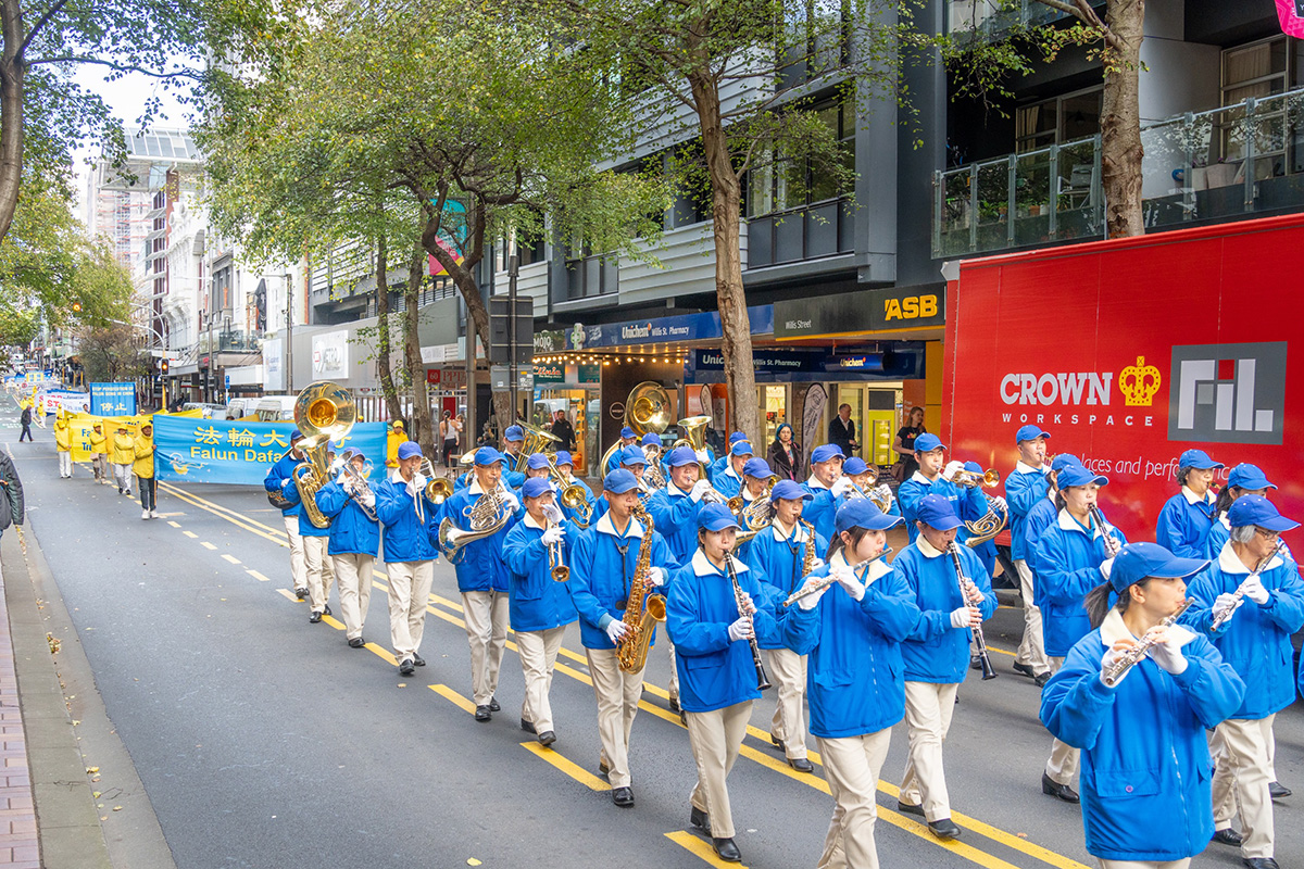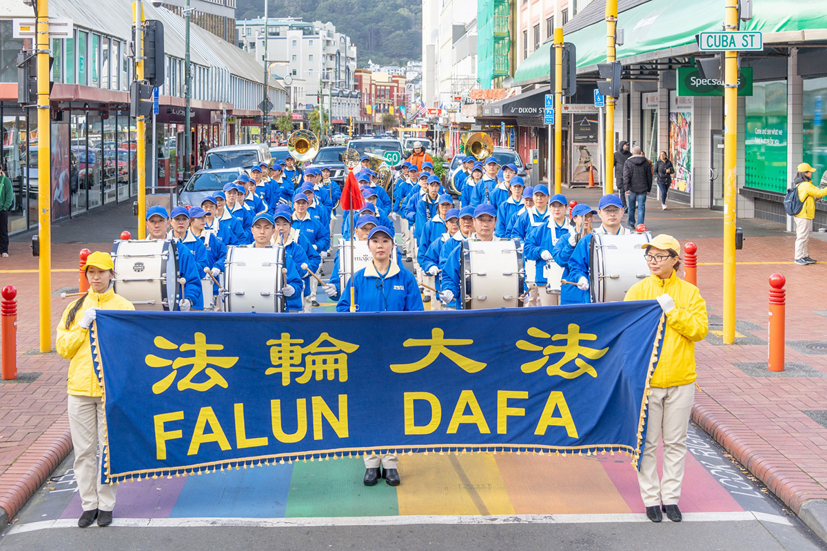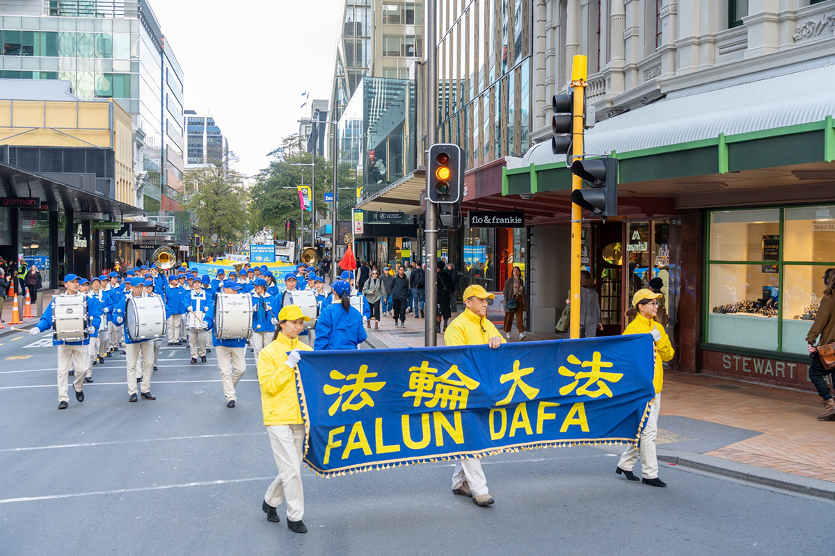 临近中午时分,由法轮功学员组成的天国乐团打头阵,从市中心古巴(Cube)街出发,在主要商业中心米德兰(Midland)公园,稍作停留演讲后,抵达新西兰国会大厦。在国会大厦门前,三位法轮功学员讲述了他们在中国遭受迫害的亲身经历,希望民众认清中共的邪恶本质,共同反对迫害,解体中共。