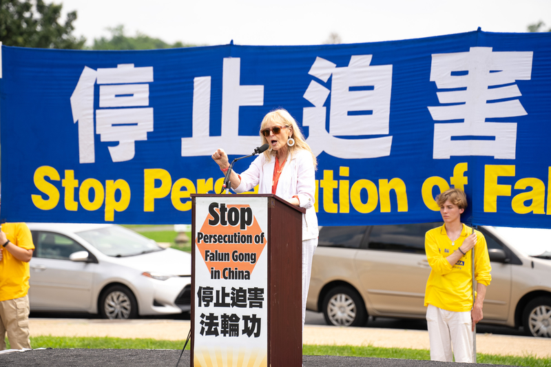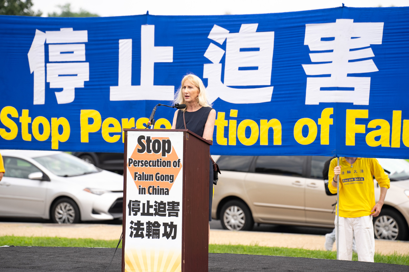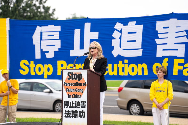 基督教自由国际总裁温迪·赖特(Wendy Wright)在集会上对法轮功学员们说:“我要感谢你们今天来到这里。我第一次接触法轮功是在近二十年前,当时我正在国家广场散步。我看到了像今天这样的场面。我以前也听说过法轮功,但那是我第一次亲眼目睹和看到法轮功学员平和地持续露中共的邪恶。”