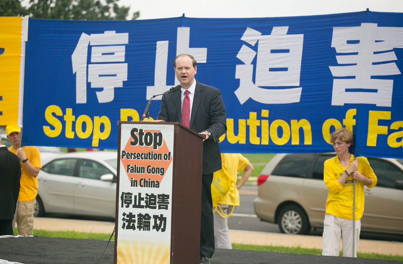 克里斯·史密斯议员的高级顾问皮耶罗·托齐(Piero Tozzi)来到法轮功学员反迫害集会现场,宣读了CECC的联合声明。