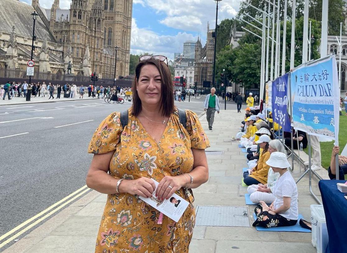 她表示中国是个大国,“有些特权阶层从贩卖器官获利,用权力极力掩盖真相。他们欺压老百姓,使有些人不敢说话,致使迫害持续发生,但是他们(法轮功学员)站出来讲真相,使人们意识到问题的严重性。希望英国政府和美国政府能施加压力,帮助停止迫害。”