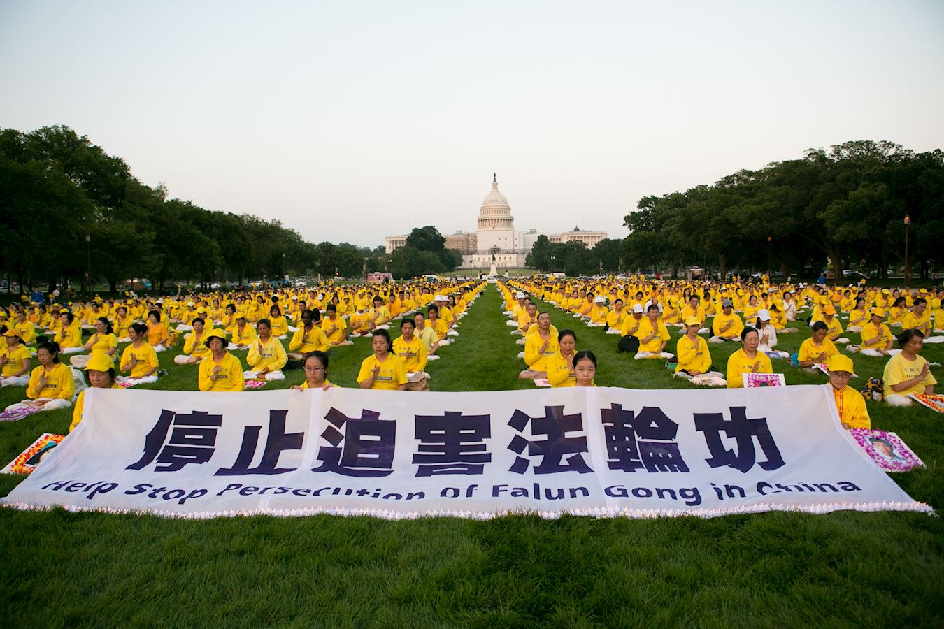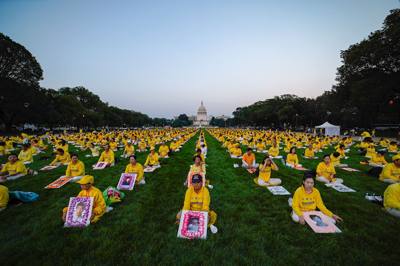 ![]() 图1~2:二零二三年七月二十日晚间,一千五百多名法轮功学员聚集在美国国会山与华盛顿纪念碑之间的国家大草坪上举行烛光夜悼,呼吁停止迫害。 |