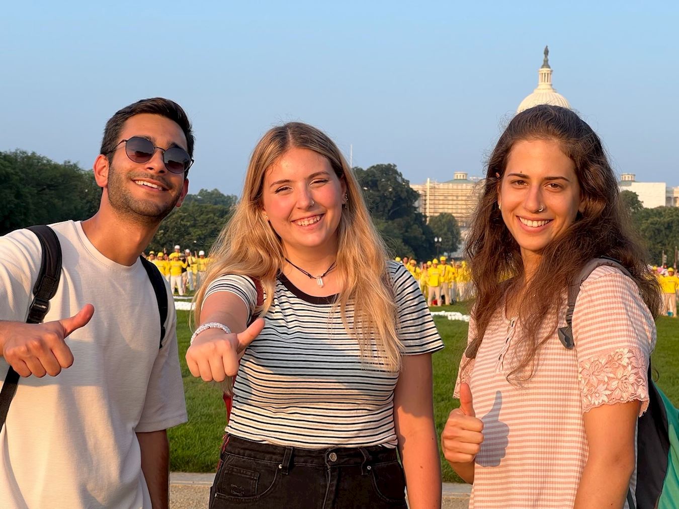 来自以色列的萨娜(Sarah)和朋友们趁暑假来美国首都游玩,看到法轮功学员烛光守夜的场景,深受触动:多么美好壮观的场景,这么多人,却如此祥和安宁,难以置信!只听着音乐我就觉得很疗愈,我一定要回去好好学法轮功。当得知他们在这里悼念被中共虐杀的法轮功学员,她说:最嘈杂的其实是懦弱的表现,安静平和才是真正的强大!