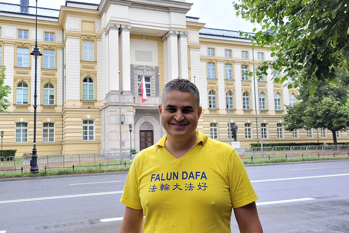 法轮功学员马丁(Marcin)站在总理府前,告诉大家:“我们今天站在这里举行这样的活动,是希望我们的政府能够更多了解中共迫害法轮功的事实真相。伸出援手制止迫害,这不仅是在帮助中国人民,也是在帮助世界各国人民,也是在帮助我们自己,因为世界需要‘真、善、忍’,中共毁灭的是普世价值,所有人都将是受害者,因此在这场世纪正邪之战中表明立场,选择出路,那是关乎每个生命未来最重要的事情。”