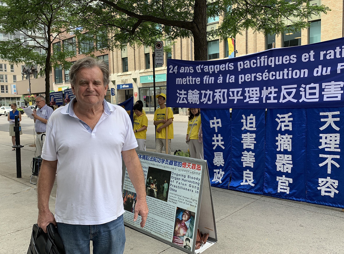 来自巴西从事国际贸易的皮埃尔(Pierre),看到展板上中共活摘器官的罪恶后非常震惊,他对法轮功学员说:“我们的心和你们在一起”,他感谢法轮功学员曝光中共罪恶,“我要把这件事告诉所有的朋友。”