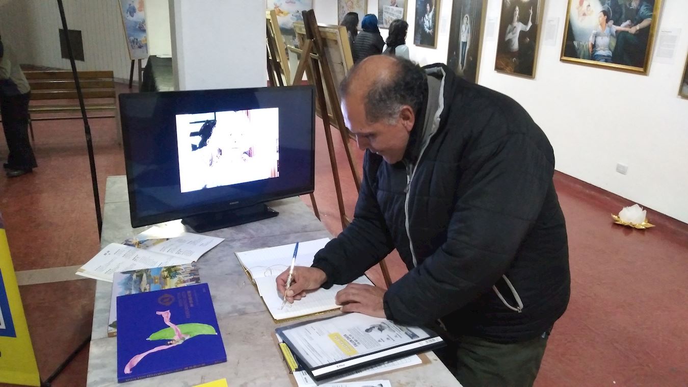 审议委员会主席费尔南多·尤里(Fernando Juri)对画展表示赞扬和祝贺,他表示他会为今后的活动敞开大门,他并感谢当地法轮功学员给他提供的真相材料。