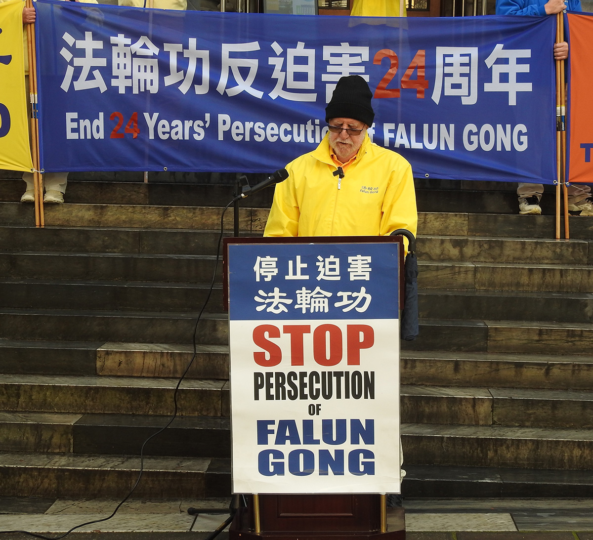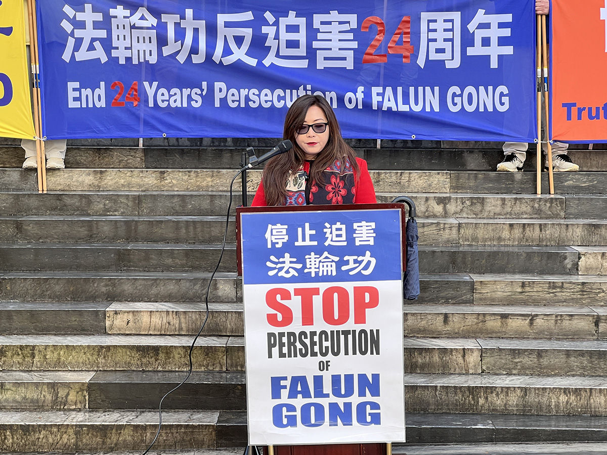 她还表示:“二十多年中共一直想阻止法轮功学员发声,但今天你们站在这里肯定了它们是阻止不了的。我们任何人都不能容忍不公正行为。”