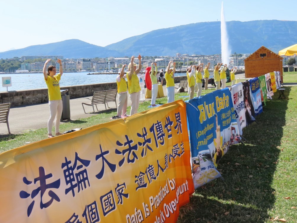 ![]() 图1:二零二三年七月二十日,瑞士法语区法轮功学员在日内瓦湖边,联合国人权事务高级专员办事处前集会,纪念反迫害二十四周年。 |