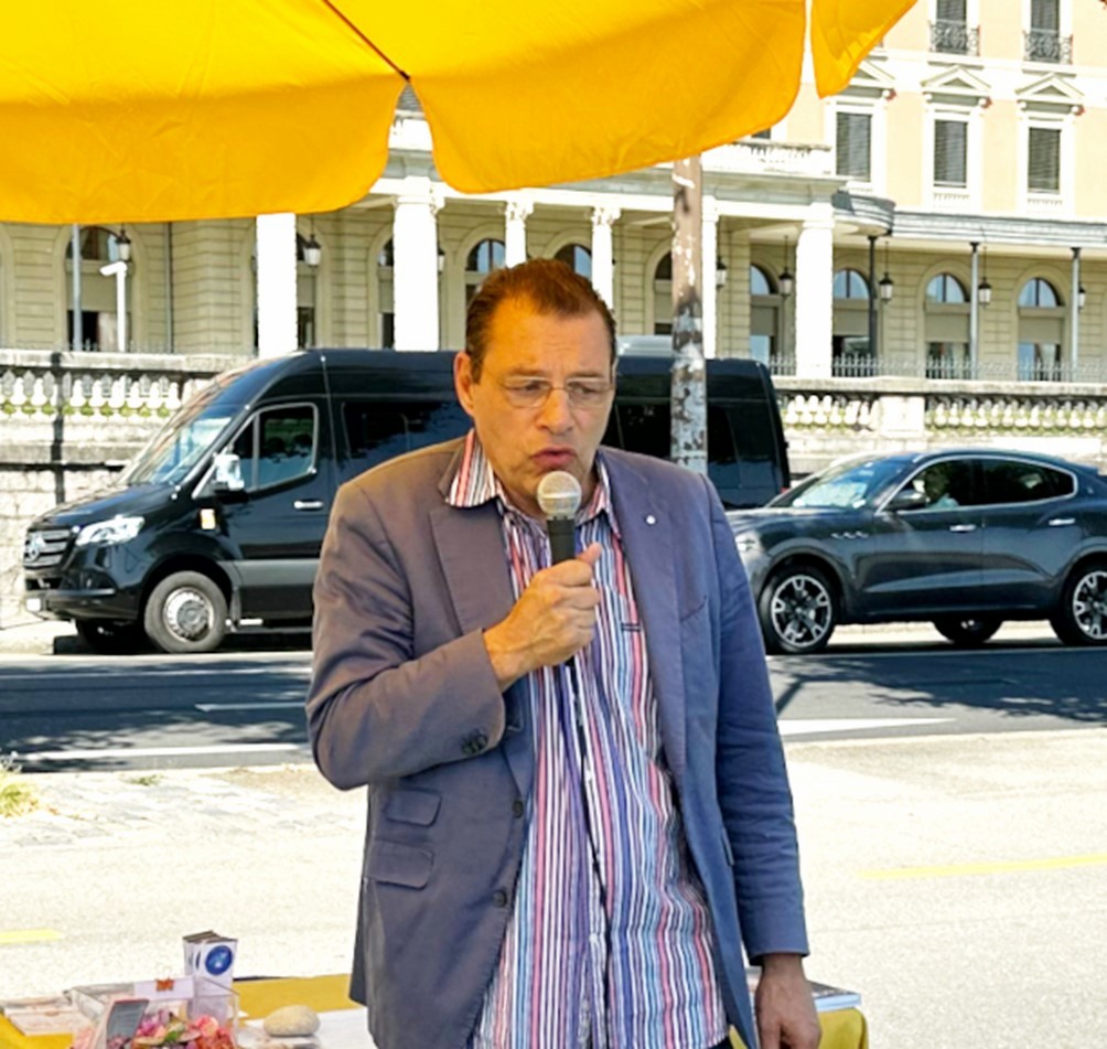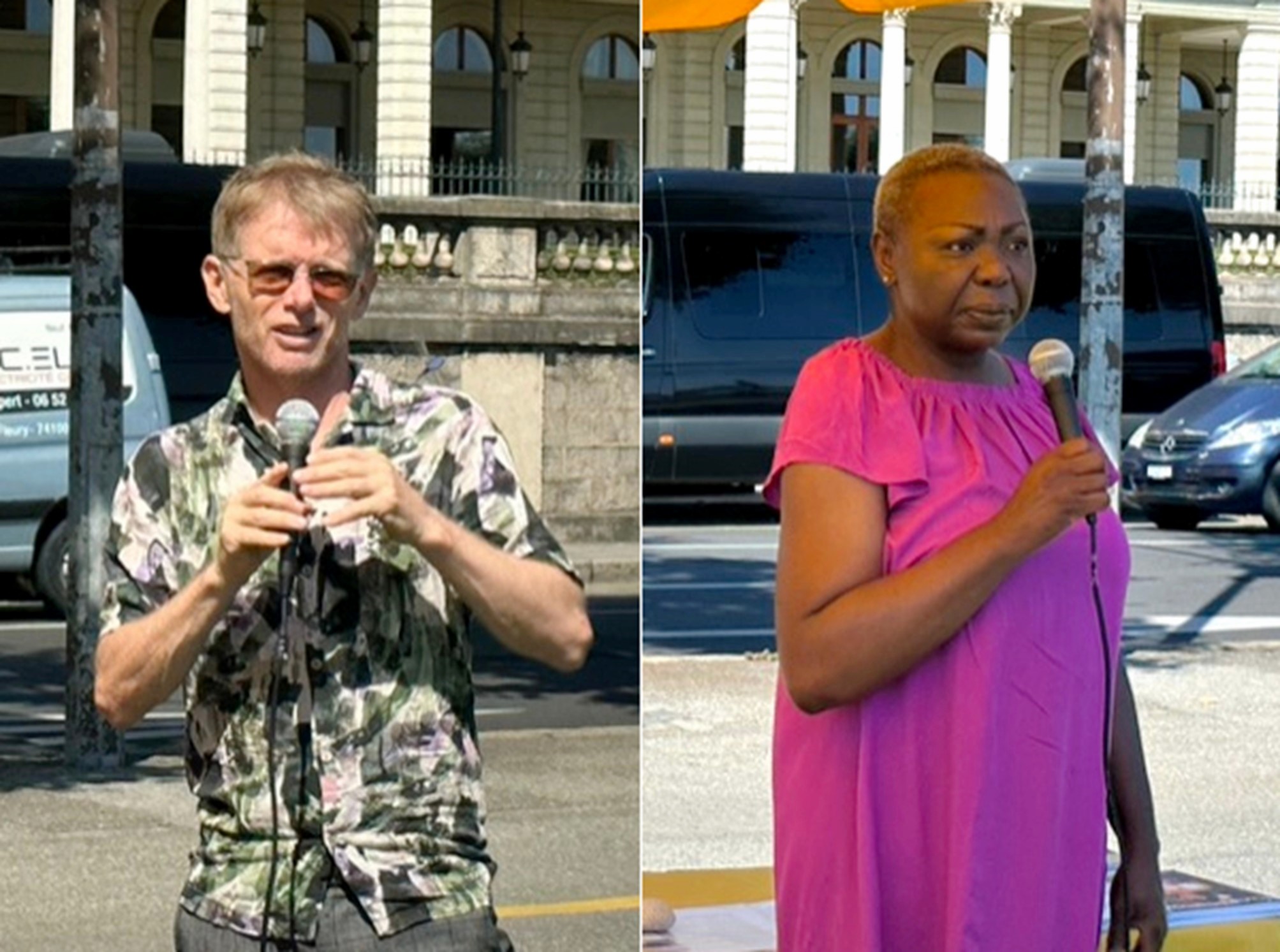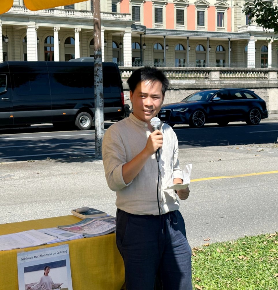 瑞士法轮功学会代表在发言中感谢瑞士法语区各州各级议员,多年来坚定不移地谴责中共当局对法轮功学员实施的残酷迫害,及对法轮功学员的宝贵支持。