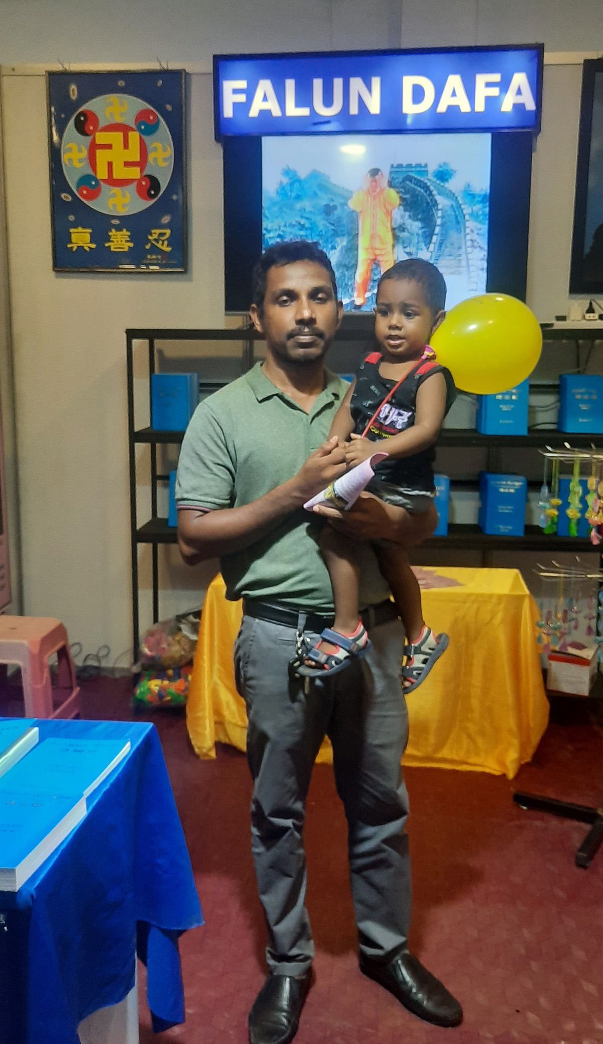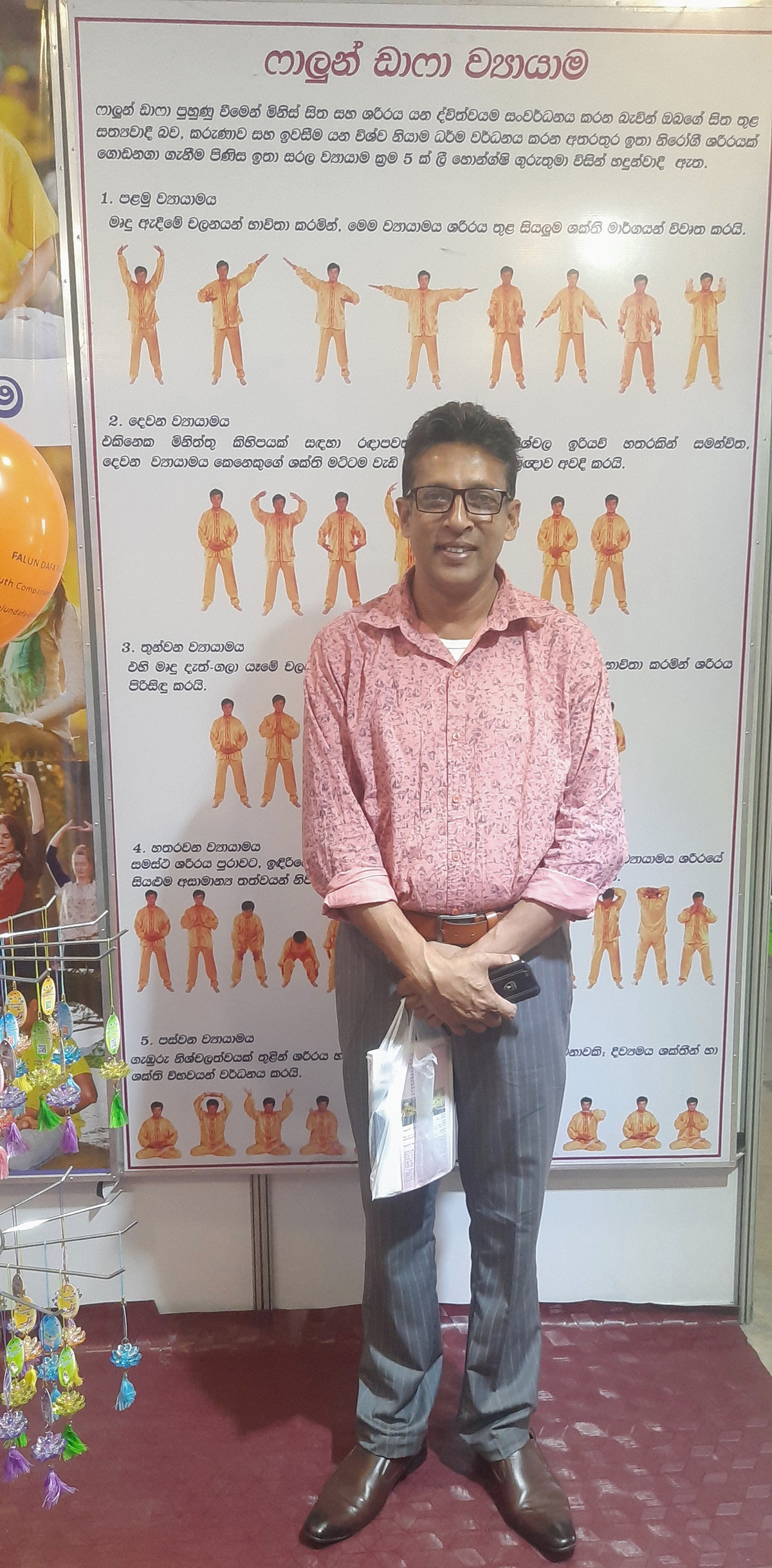 查明达·卡鲁纳提拉卡(Chaminda Karunathilaka)是一位摄影师,他不经意间来到法轮功学员的展位。他对法轮大法强调提高道德品质从而达到身体健康的理念很感兴趣,他买了一本《转法轮》以便进一步了解。