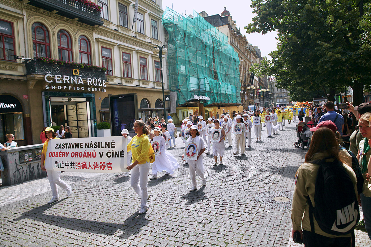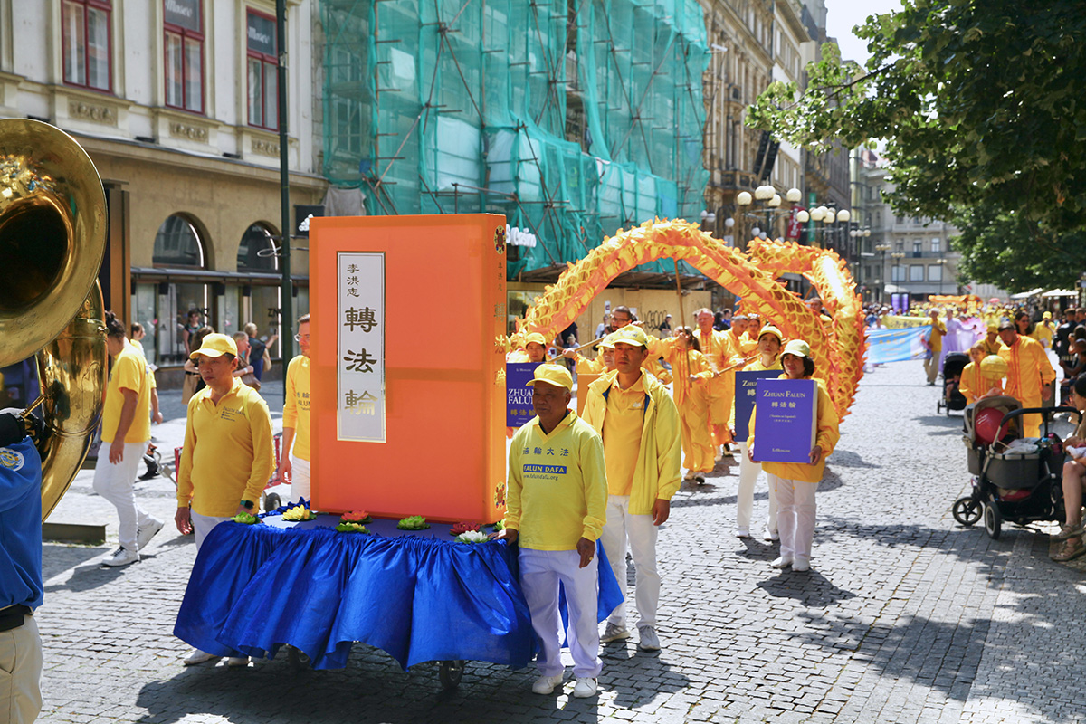 法轮功学员的集会游行活动当天,布拉格天气凉爽,游人如织。时逢中欧最大的民俗节在布拉格召开,来自世界二十多国五十多个团体也聚集在布拉格。法轮功学员的集会与游行都吸引了大量民众驻足观看。多国民众在了解了中共迫害法轮功的真相之后,纷纷签名声援法轮功学员反迫害。