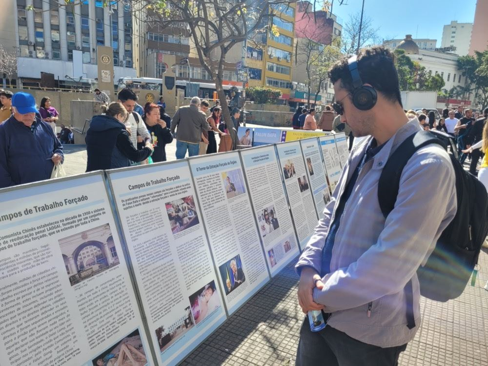 另一位路人是福音派的,他说自己对巴西的共产主义非常了解,他仔细看了一会儿展板,然后说:“这个主题非常重要。”在一位学员向他解释了(中共的)迫害之后,他说:“我希望中国能回到中共掌权之前的样子。”