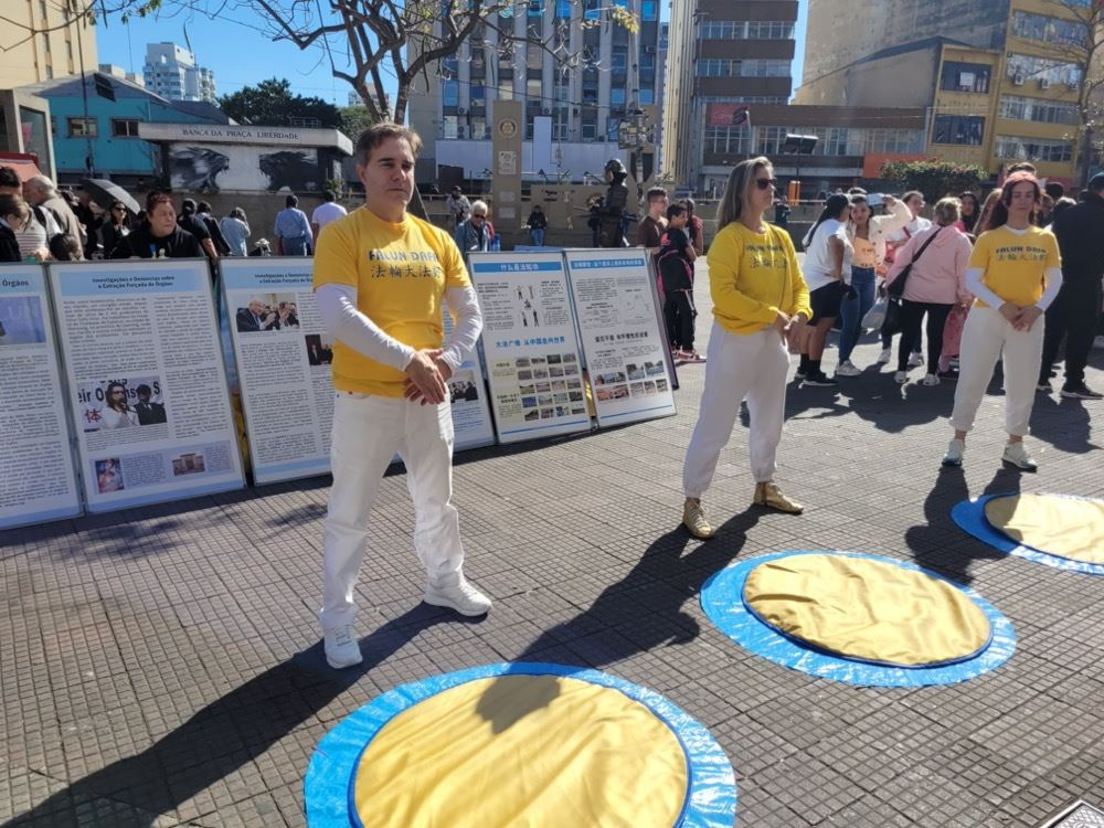 在圣保罗利伯达德区,学员们向路人介绍法轮功和中共的迫害,揭露了中共对信仰真善忍的人们的残酷镇压。他们的活动引起了许多路人的关注和兴趣,他们希望了解更多。