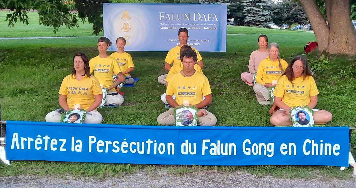 舍布鲁克市是魁省埃斯特里(Estrie)地区的中心城市。七月二十日晚七点,法轮功学员来到国民湖畔(Lac des Nations)集体炼功和烛光夜悼,向过往民众揭露中共残酷迫害的真相。