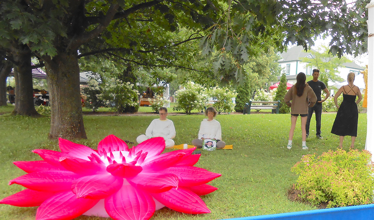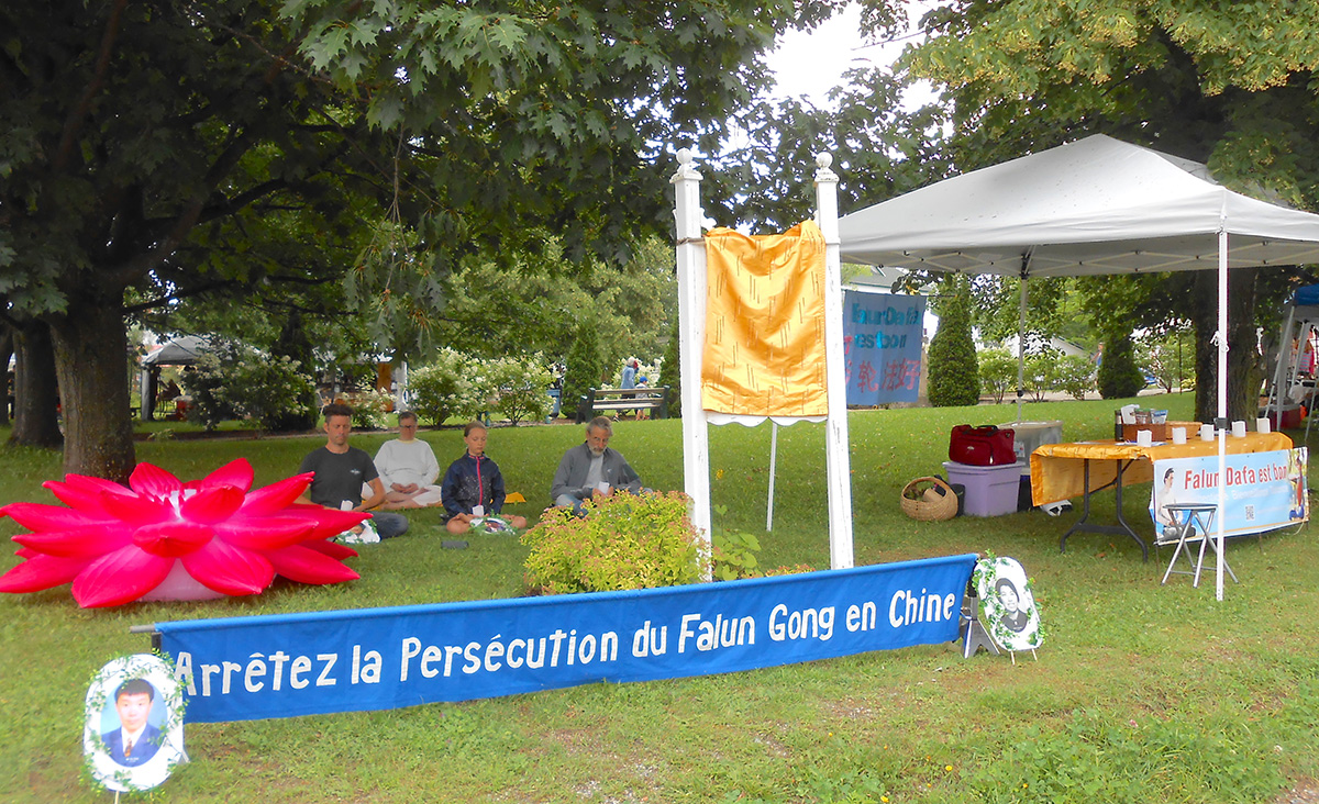圣-阿德良(St-Adrien)是埃斯特里(Estrie)地区的一个安静的村庄。每年夏天,当地法轮功学员在周日集市上设立讲真相摊位,至今已三年,当地村民都知道法轮功好。七月二十二日这天,部分法轮功学员在集市上举行反迫害征签、集体炼功和烛光悼念活动。