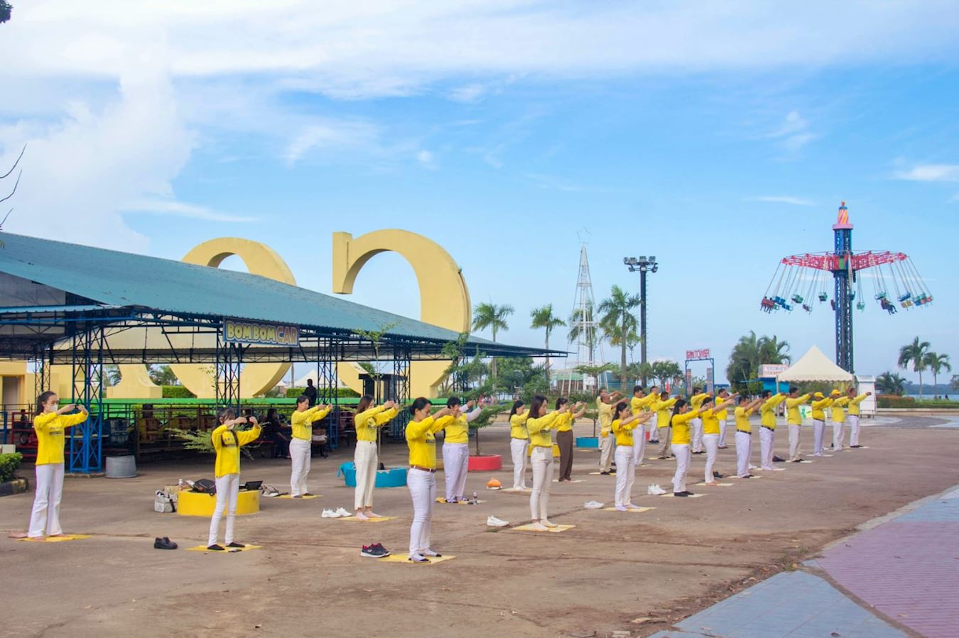 ![]() 图1:印尼巴淡学员们集体炼功。 |