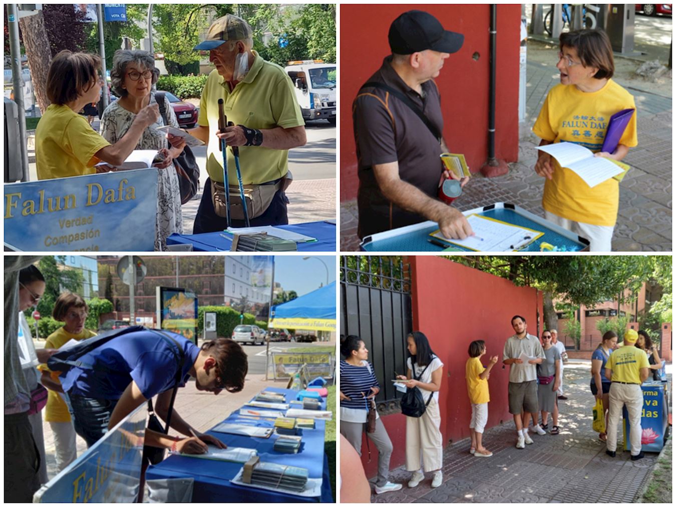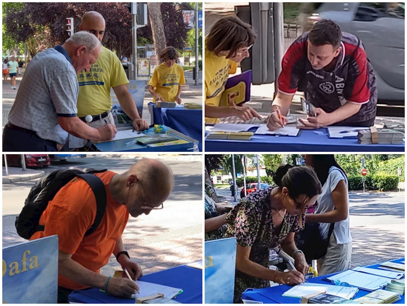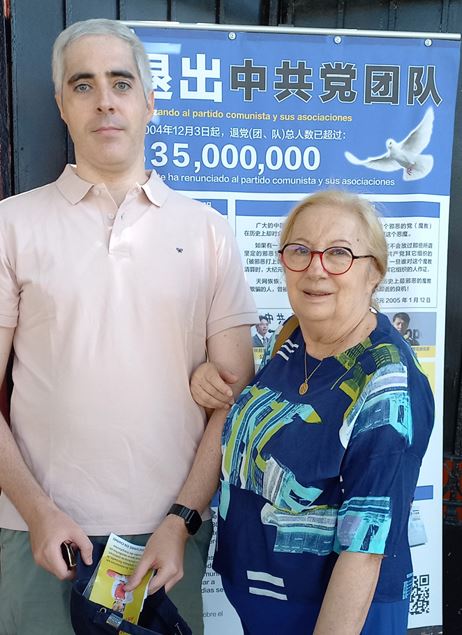 卡尔门(Carmen)女士和家人鲍尔哈(Borja)先生路过中(共)国大使馆,得知法轮功学员在中国遭受迫害已经持续二十四年,他们立即签署了请愿书。卡尔门女士说:“中共的独裁政权夺走了人们的灵魂,这是最可怕的盗窃行为,是对一切灵性的野蛮践踏。我相信中共官员的大多数人内心深处也有灵性,但灵性被压抑了。我希望他们能够勇敢一些,敞开灵性,选择正确的路。”