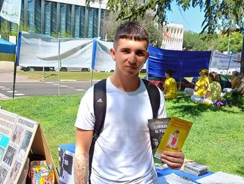 十七岁的高中学生卡洛斯(Carlos)听到炼功音乐,看到迫害照片时,走近并了解了法轮功学员因其信仰而受到迫害。他是第一次听说法轮大法,签署请愿书后,他说:“首先人们应该有自由,每个人都应该享有信仰自由,大家必须一起来改变这种情况。中共做恶最终会受到惩罚,中共必须改变。”