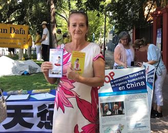 一位路过的女士在了解到中共活摘器官的真相后,非常震惊和愤怒,她说:“活摘器官这竟然发生在现实社会!而受害者还是好人。作为西班牙人,我觉得真是太恐怖了!人们需要尽全力帮助这件事,因为这些恶行不应该出现,恶人应该受到法律制裁。应当立即制止这些罪恶行为!”