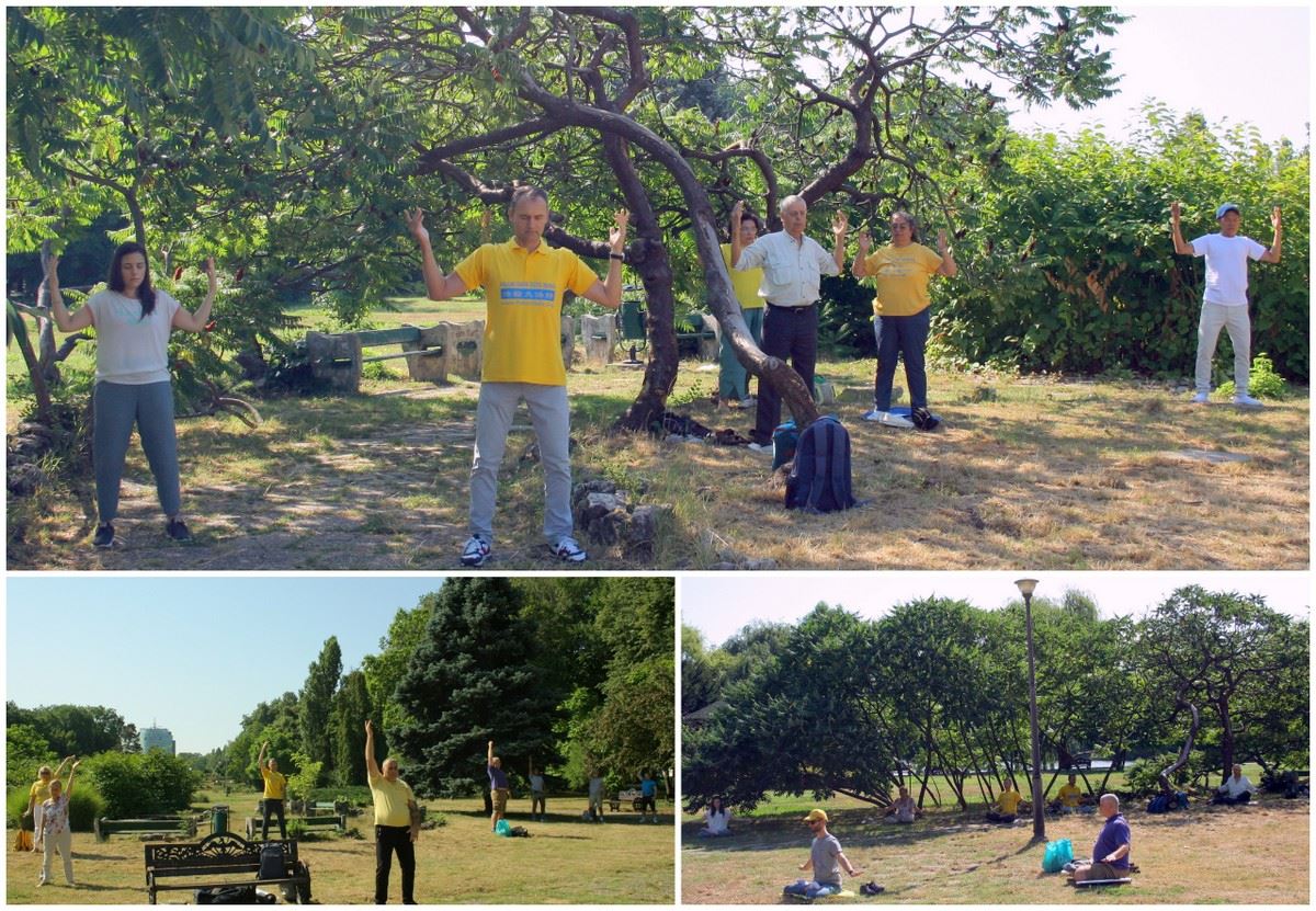 ![]() 图6:法轮功学员在罗马尼亚迈克尔一世国王公园炼功并讲真相 |