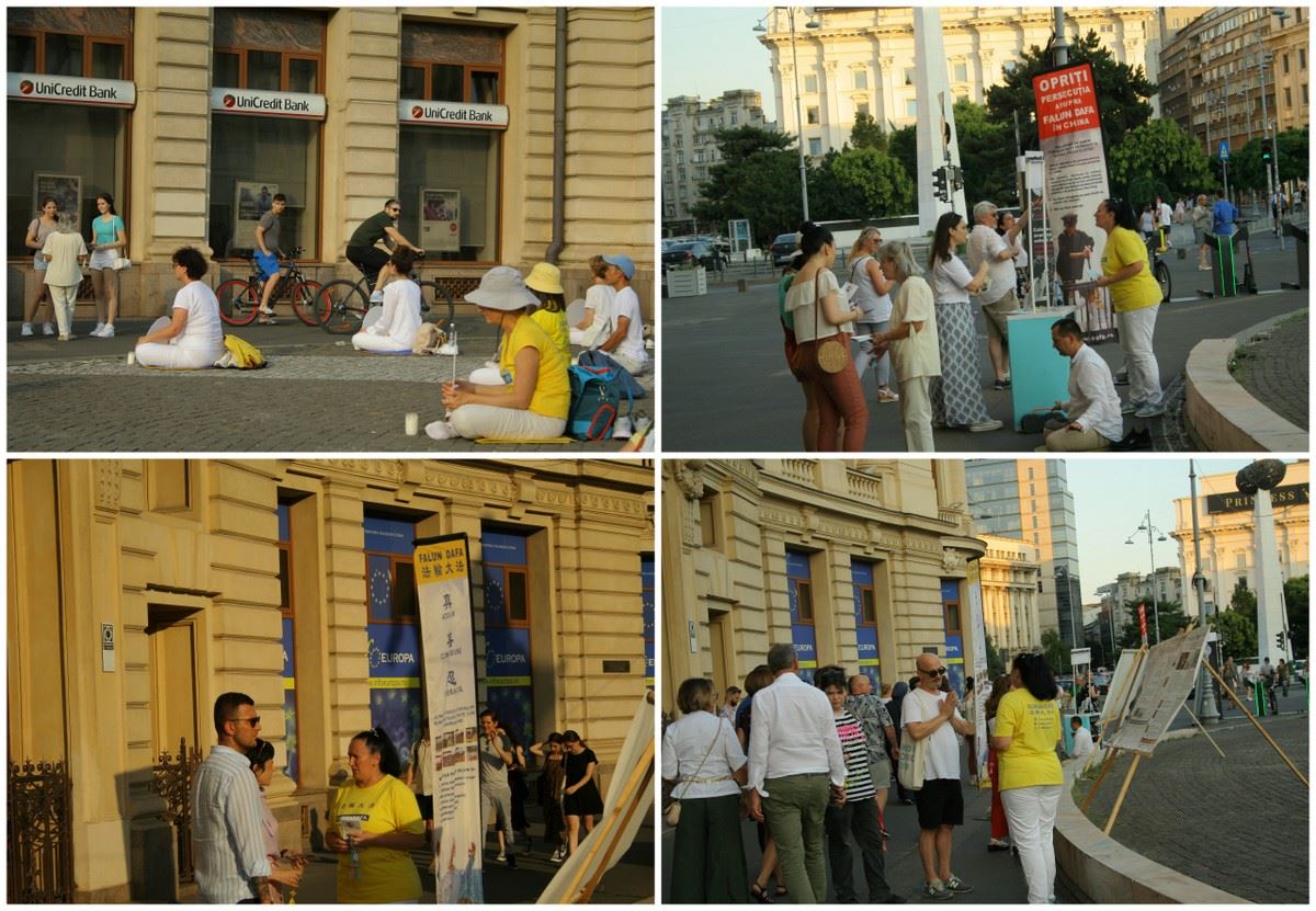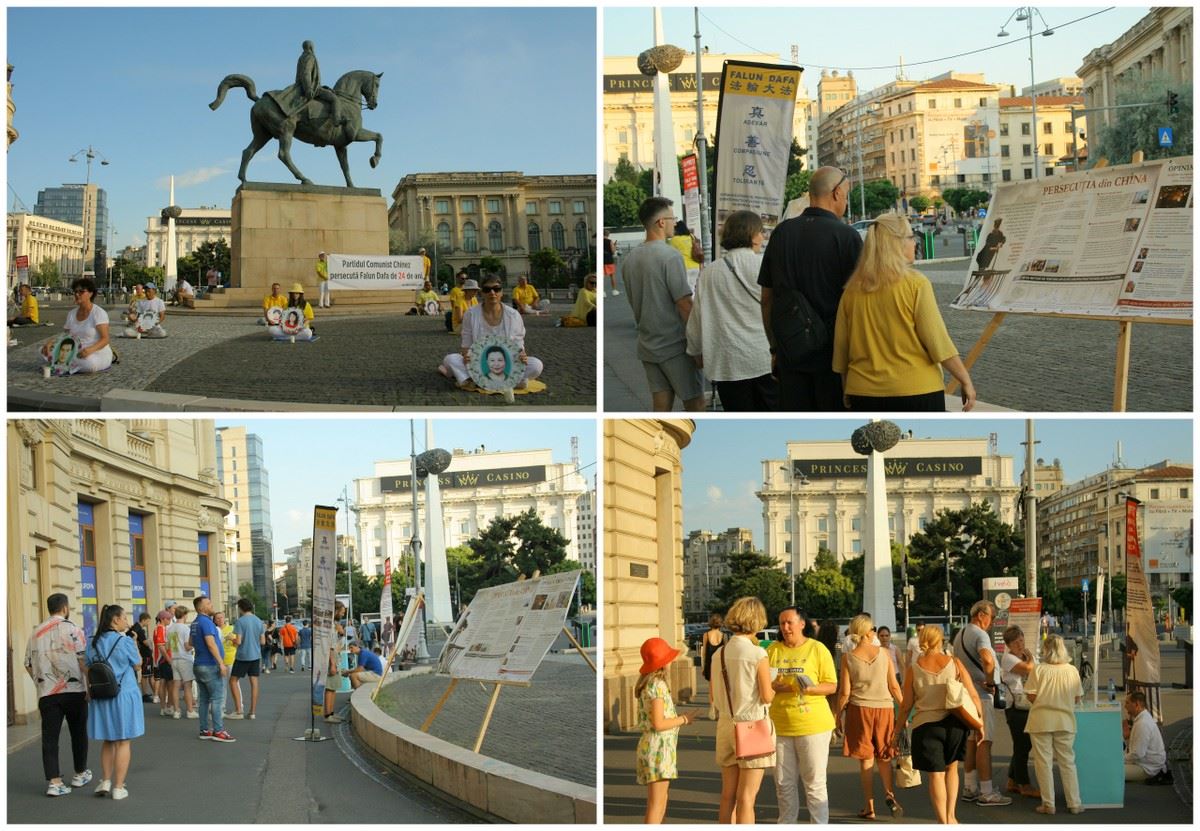 七月二十二日晚,法轮大法学员在布加勒斯特旧城区,和迈克尔一世国王公园入口处组织了讲真相活动,告诉罗马尼亚民众中共对法轮大法长达二十四年的迫害。