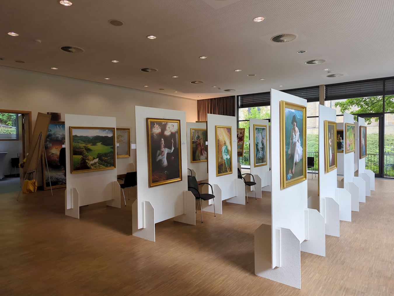 二零二三年七月十九日至二十三日,“真善忍国际美展”在德国科堡(Coburg)举行。将近四十副参展画作吸引了众多参观者。有些人在去科堡传统的城堡广场节(Schlossplatz Festival)的途中看到画展,就进来参观。还有一些人是在几天前科堡的《弗兰科尼日报》(Fränkischen Tag)上看到了有关画展的消息,特地赶来的。