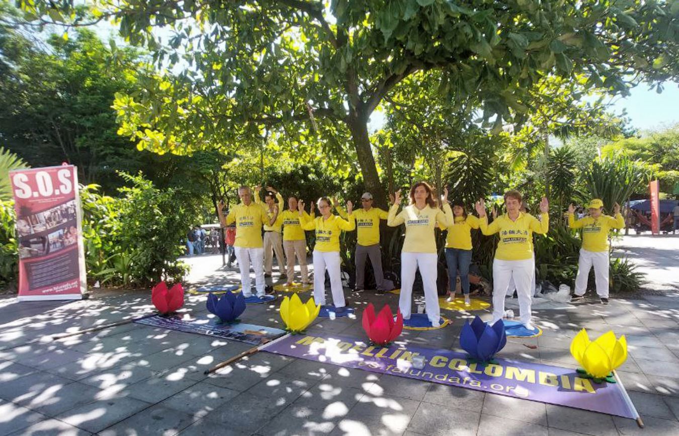 ![]() 图1:二零二三年七月二十日,哥伦比亚法轮功学员在麦德林(Medellin)的探索公园内集体炼功,纪念反迫害二十四周年。 |