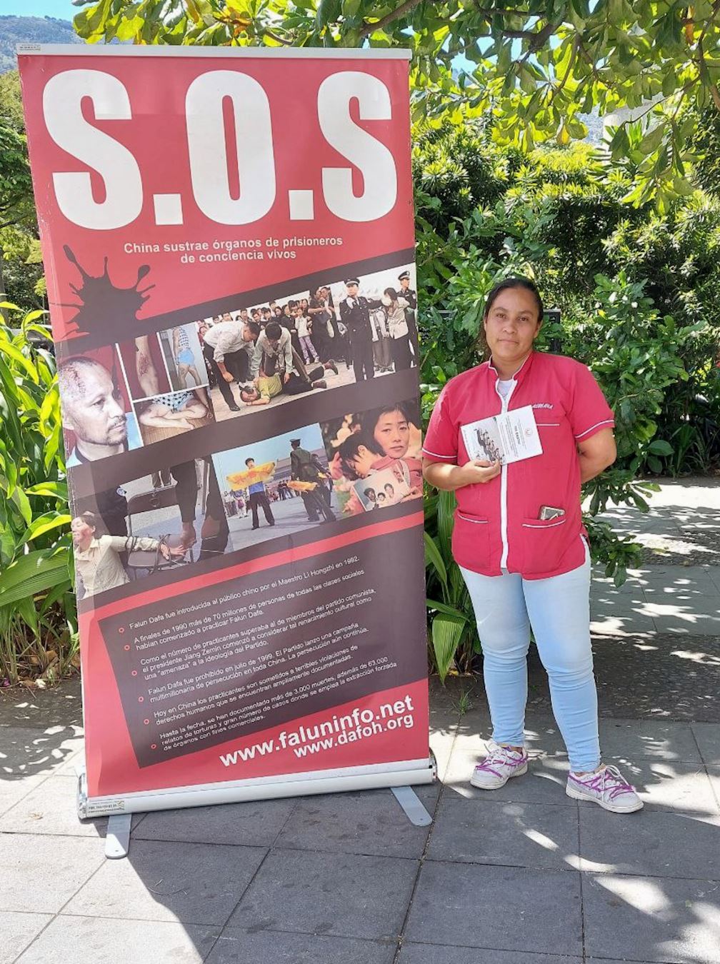 阿德里安娜(Adriana)当天在公园工作,出售水果和饮料,她了解到法轮功的很多信息,她对中国不同年龄的学员们因为信仰而遭受到中共的种种虐待感到痛心。她说:“这种迫害令人悲伤。”