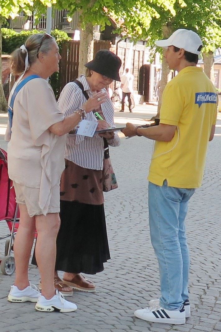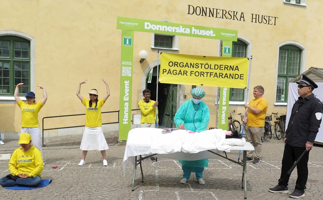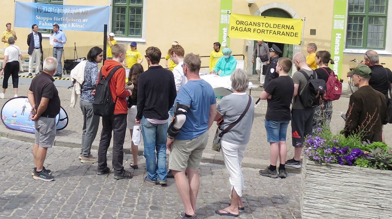 ![]() 图1:二零二三年六月二十七日至七月一日,瑞典法轮功学员来到哥特兰省府维斯比市(Visby)举办“模拟活摘法轮功学员器官”演示,现场民众谴责迫害。 |