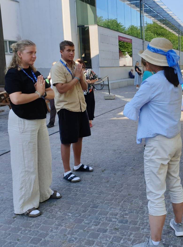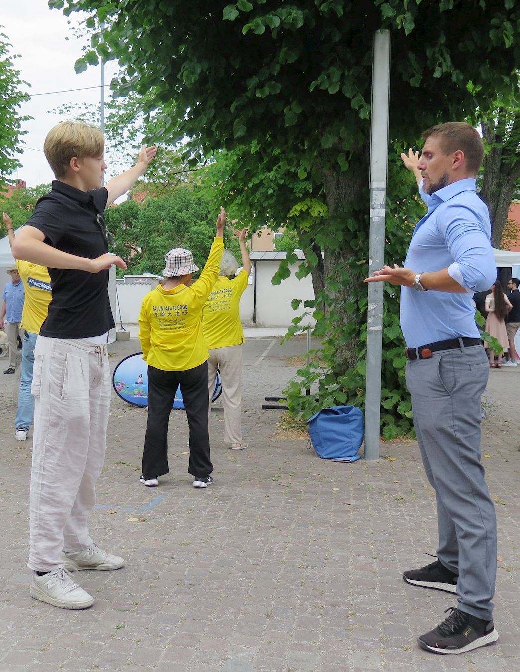 一位年轻的哥特兰本岛人皮特来到真相点,在法轮功学员的建议下他尝试了炼法轮功的第一套功法:佛展千手法。他说:“我体会到了祥和和快乐,能量在我体内流动,这是我从未体验过的。”