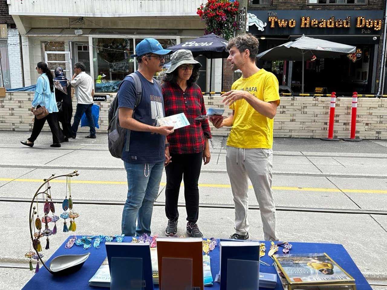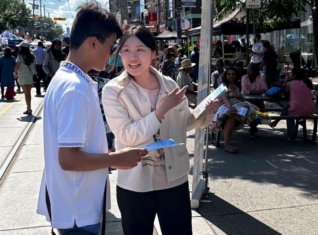 曹女士是广东人,十八岁来到加拿大,已定居多年。她在电视上看过介绍法轮大法的节目。在和法轮功学员交谈以后,曹女士当场做了三:退.,并拿了法轮大法传单和真相小册子。
