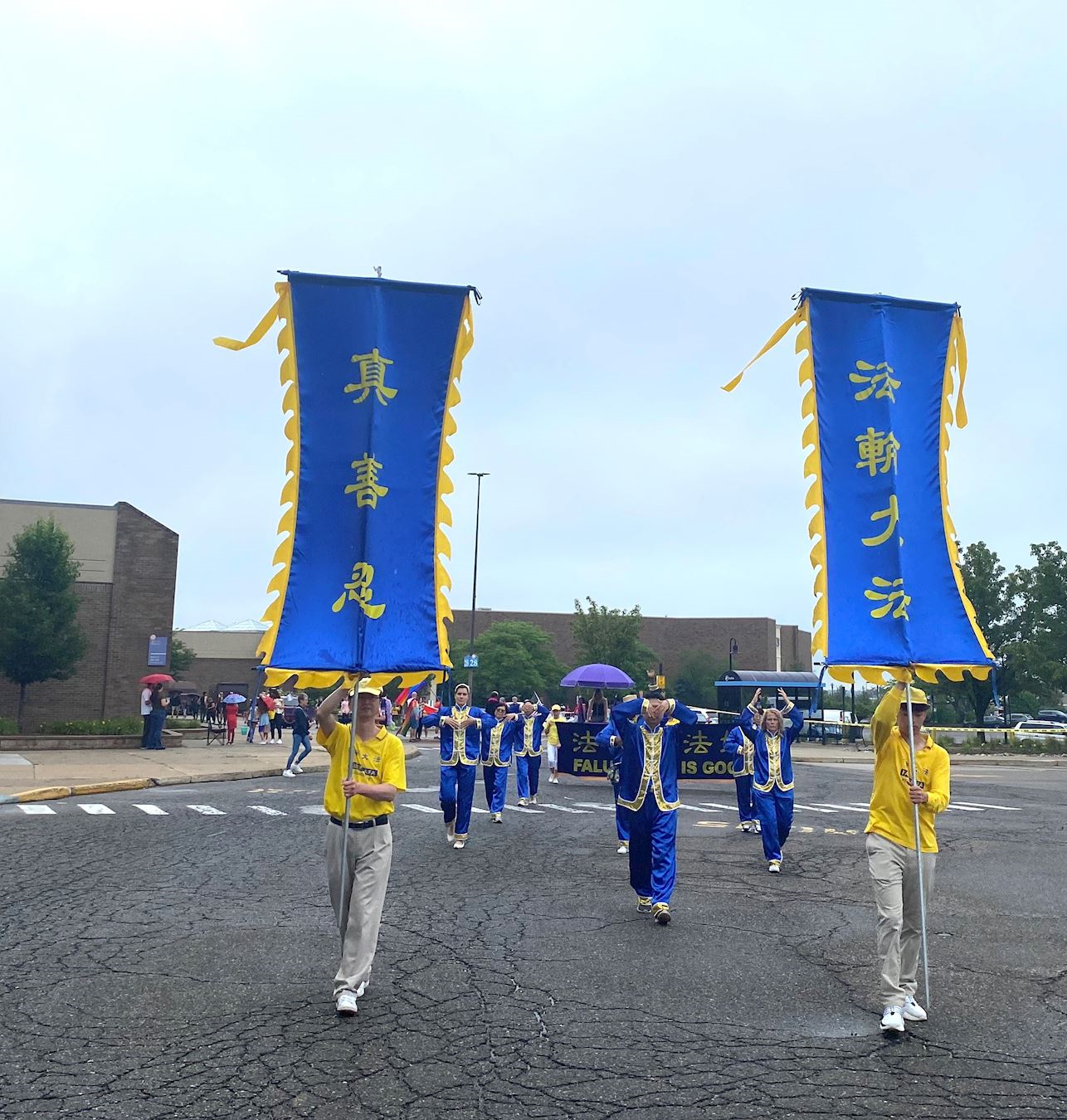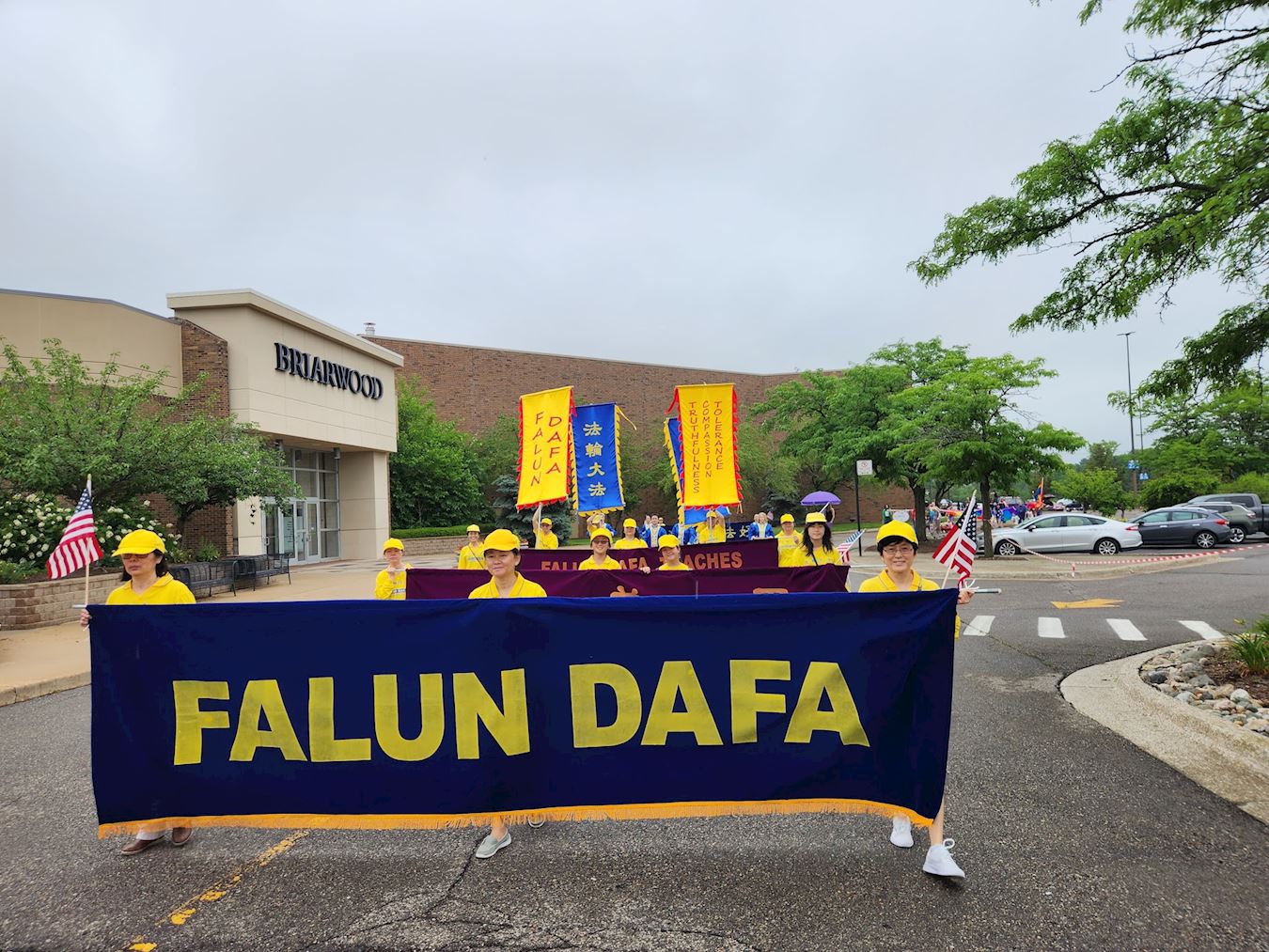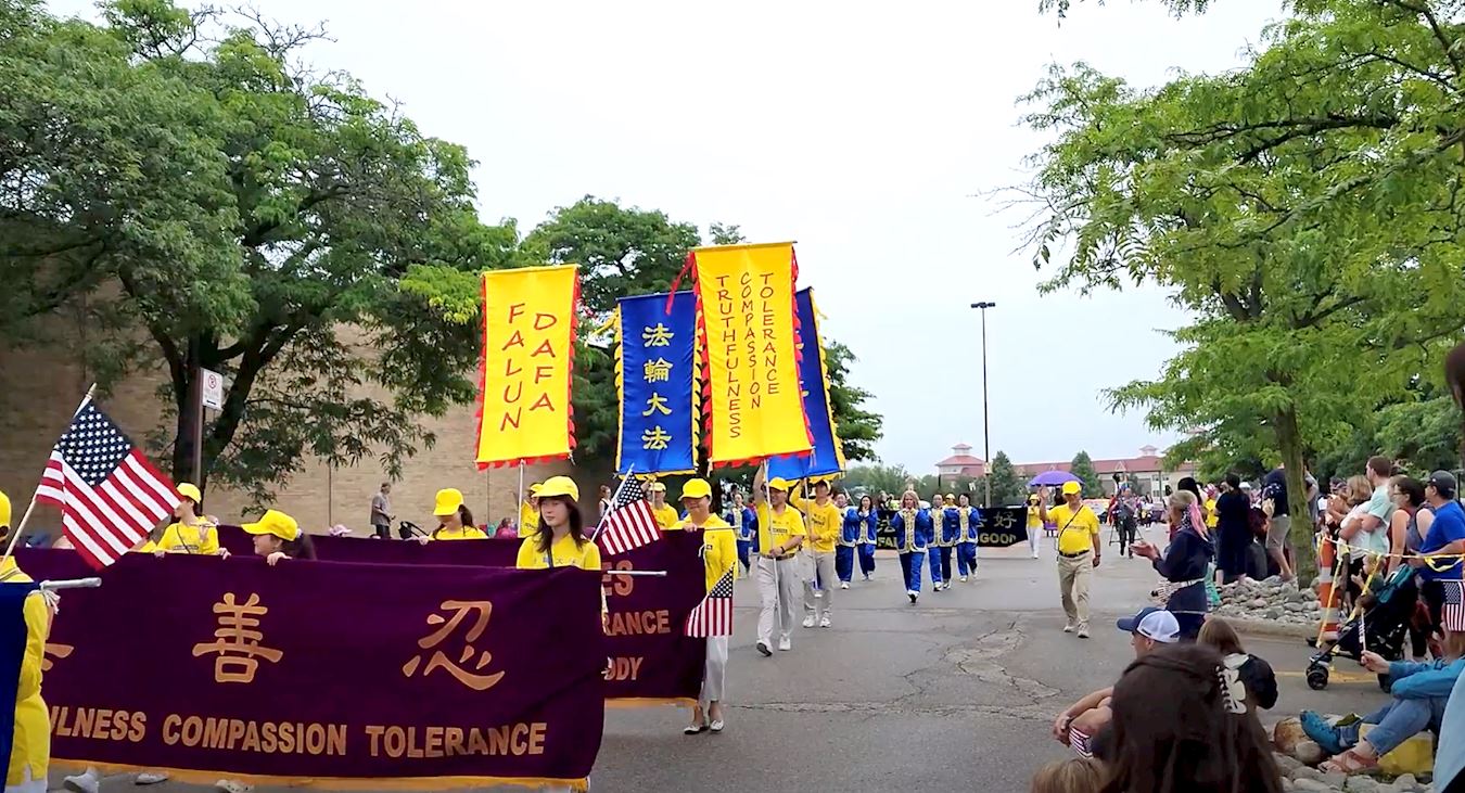 密西根法轮功学员为本次游行带来了“世界需要真善忍”、“法轮大法好!” “法轮大法教 真善忍 - 身心受益的打坐”等信息横幅,还有整齐的炼功方阵和竖旗方阵。所到之处,人们纷纷鼓掌欢迎。特别是路过主席台的时候,当主持人宣布:现在走来的是法轮大法团体。话音未落,两边的民众发出来欢呼表示欢迎。