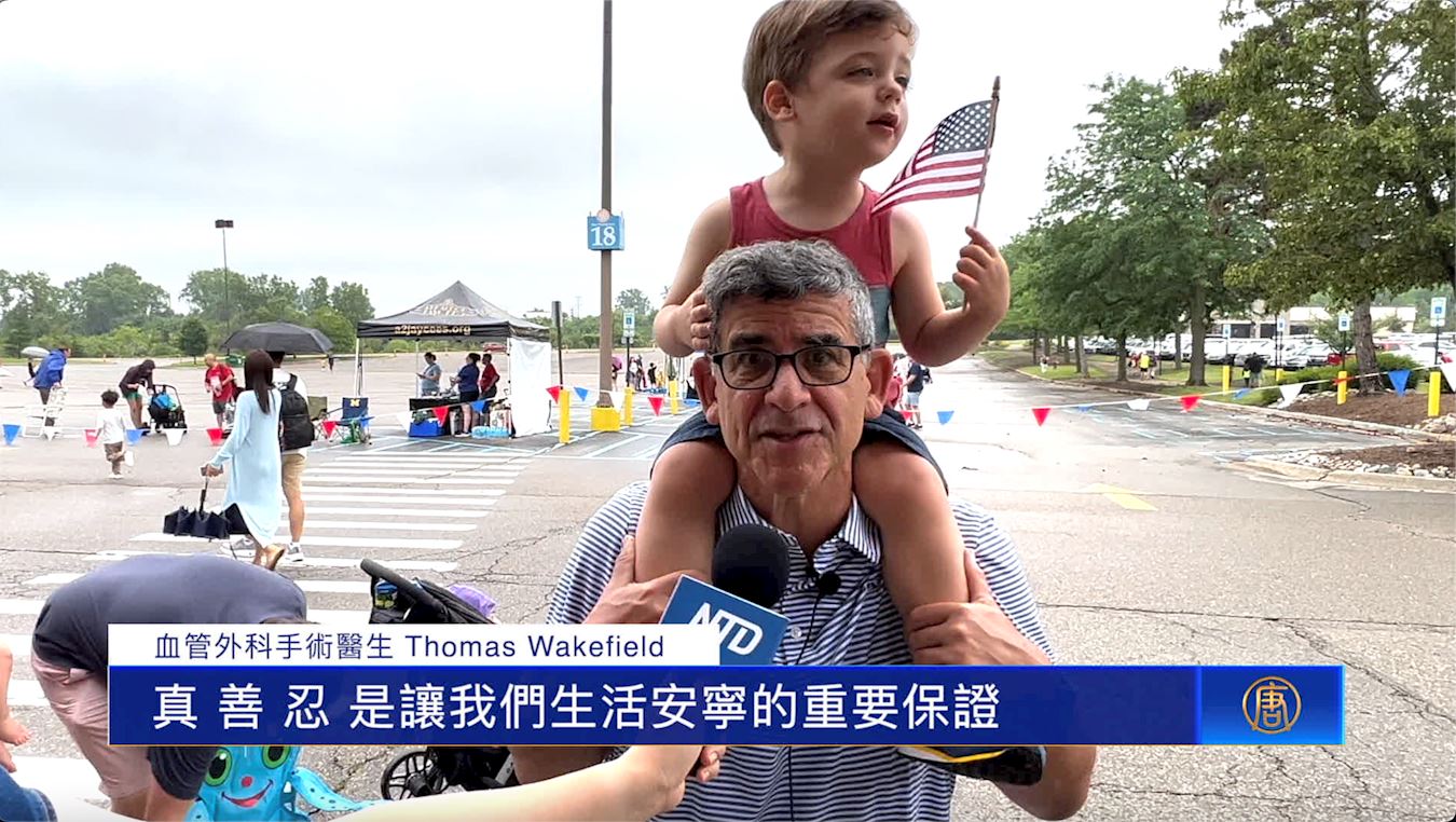 看到走过来的法轮功团体,韦克菲尔德医生说:“我认为法轮功团体能来参加非常好。这是一种意识觉醒,让人们知道法轮大法。虽然我并不熟悉,但我认为遵循真、善、忍这三个原则非常重要,是让我们生活安宁的重要保证。”