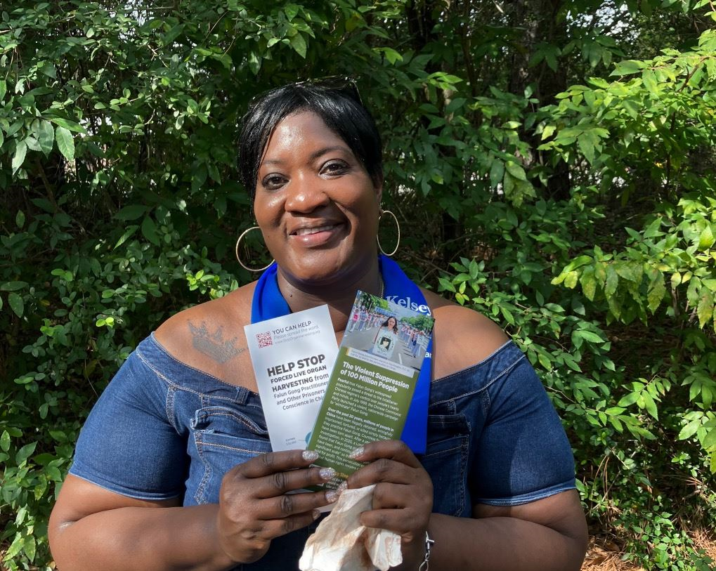 这是乔蒂第一次听说发生在中国的活摘器官的恶行,她希望自己能够帮助法轮功学员。学员告诉她可以把法轮功真相告诉家人和朋友,并到“结束中共”(End CCP)的网站上签名,她肯定地说:“我一定会的!”