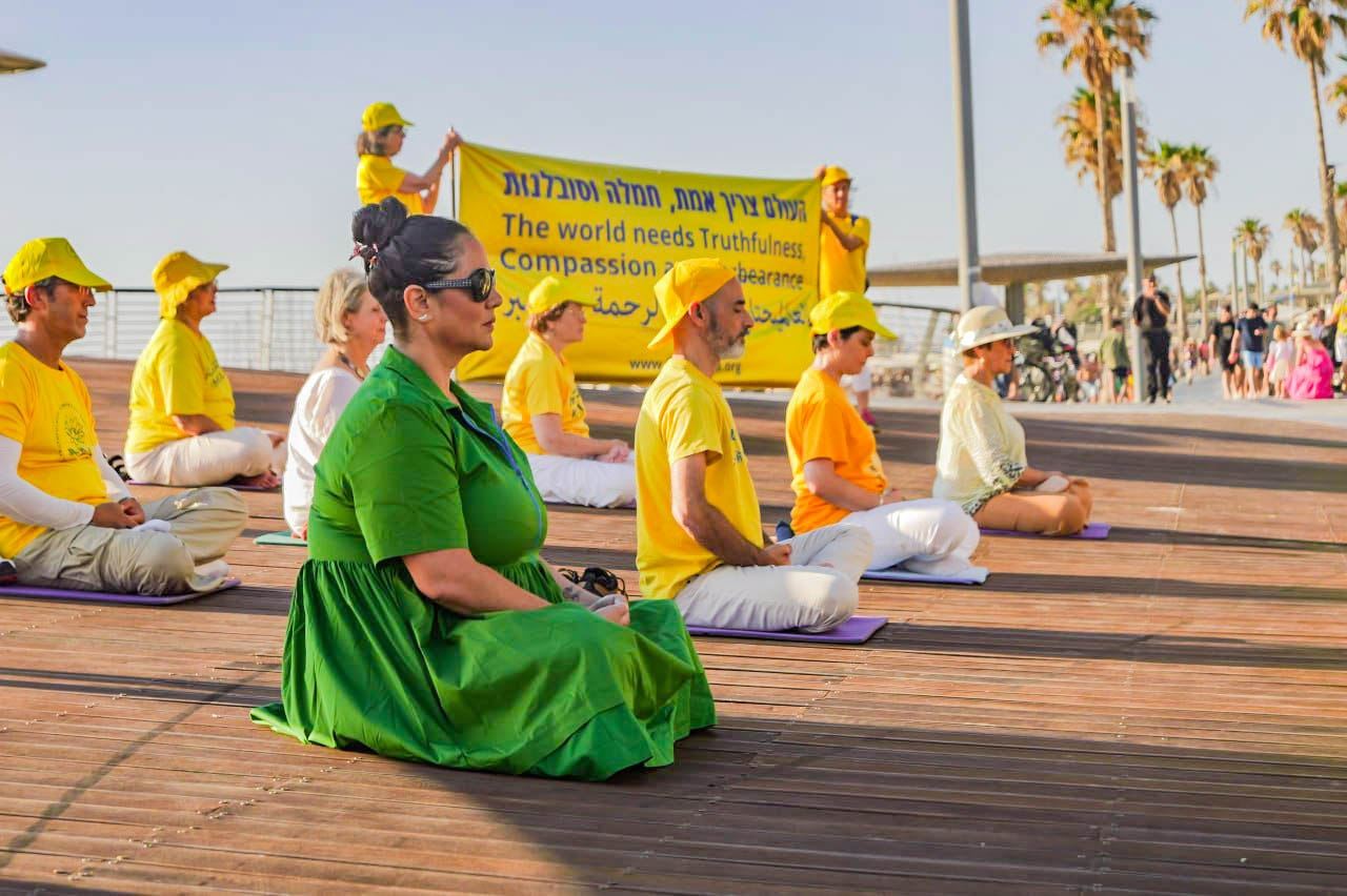 当天,幼儿园老师梅莉(Miri)和丈夫在海边庆祝她的四十一岁生日。她加入到法轮功学员的行列,学炼第五套功法。